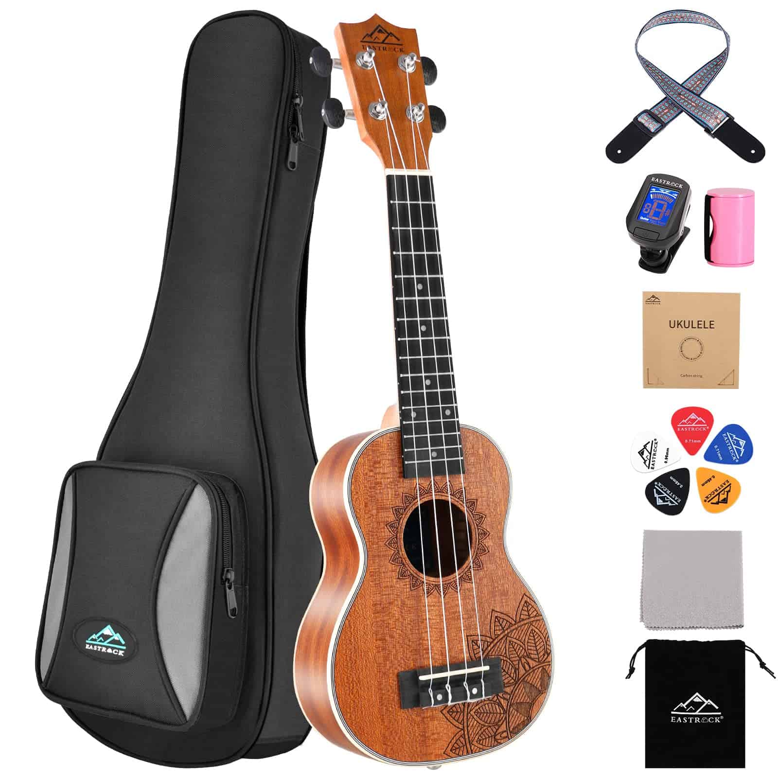 2. Sonido cálido inesperado: El Ukelele EASTROCK tiene un respaldo arqueado para dar mayor sostenimiento, tonos más llenos, cálidos y un poco más profundos que son un placer escucharlos. ¡Al tener cuerdas Aquila suaves y suaves G C E A ayuda definitivamente a que el sonido que sale de él resuene bastante claro y dulce, que también se mantiene afinado a través de múltiples tocadas (Ukelele Soprano, Ukelele).