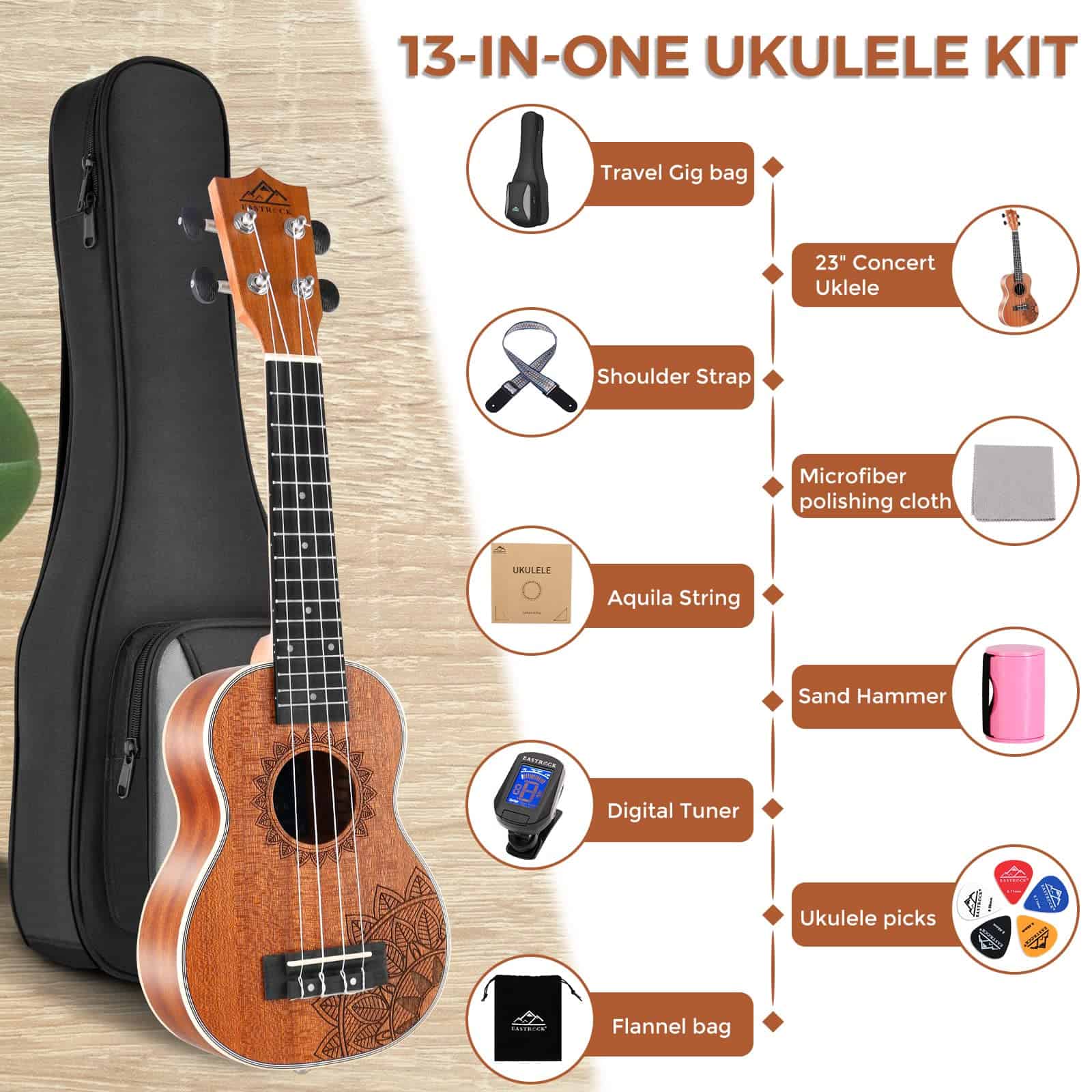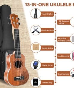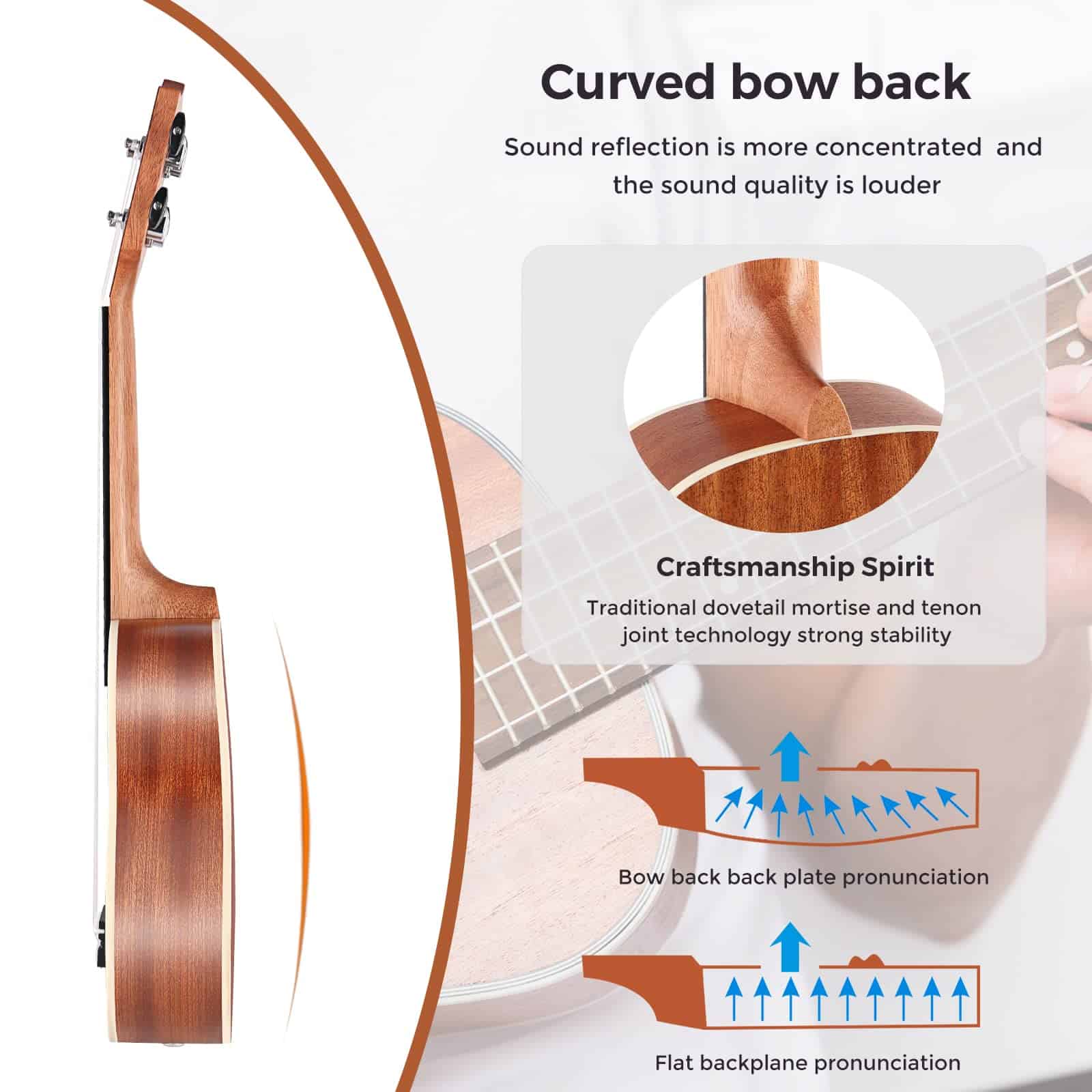 1. Perfecta artesanía de sapele: La combinación perfecta de tecnología y artesanía para ayudarte a disfrutar tocando y aprendiendo el Ukelele. La línea Gloss Sapele presenta un acabado de alto brillo con 9 procesos de fabricación de lijado y pulido, para realzar la elegancia simple de la veta de madera de sapele. El Ukelele en la imagen es el que recibirás.