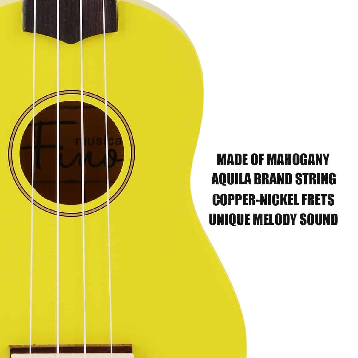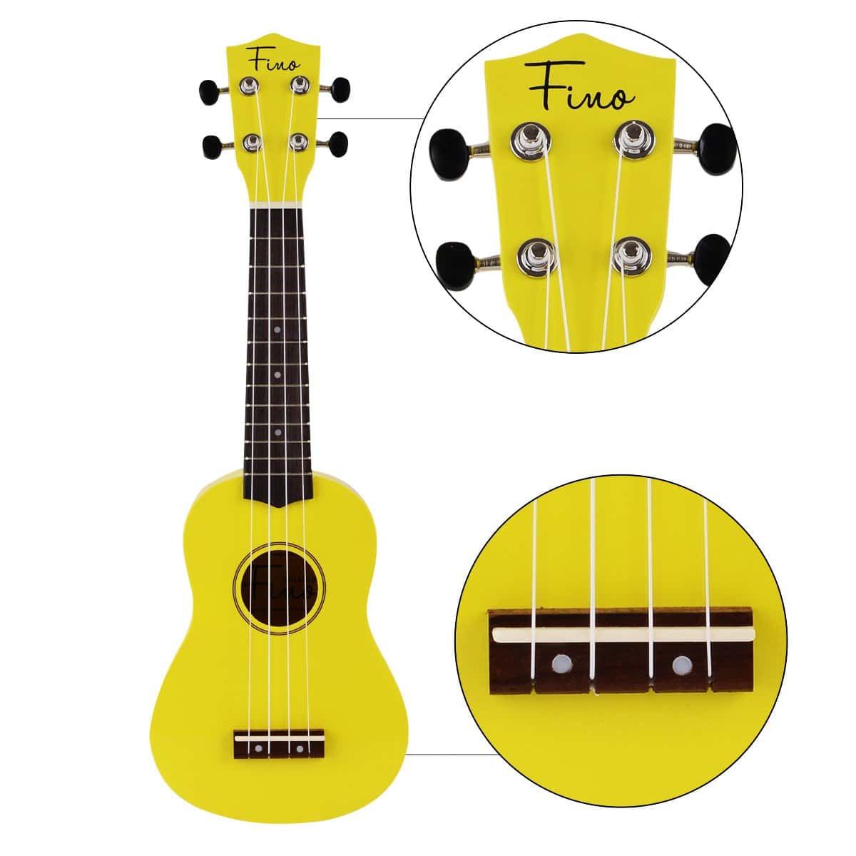 ¿Estás buscando empezar a tocar un ukelele? ¿No quieres viajar con tu ukelele caro? ¡Bueno, no busques más! FINO Music se enorgullece en presentar una nueva línea de hermosos ukeleles soprano. A diferencia de otros ukeleles de color, no escatimamos en materiales para asegurarnos de que no te decepciones al abrir la caja.