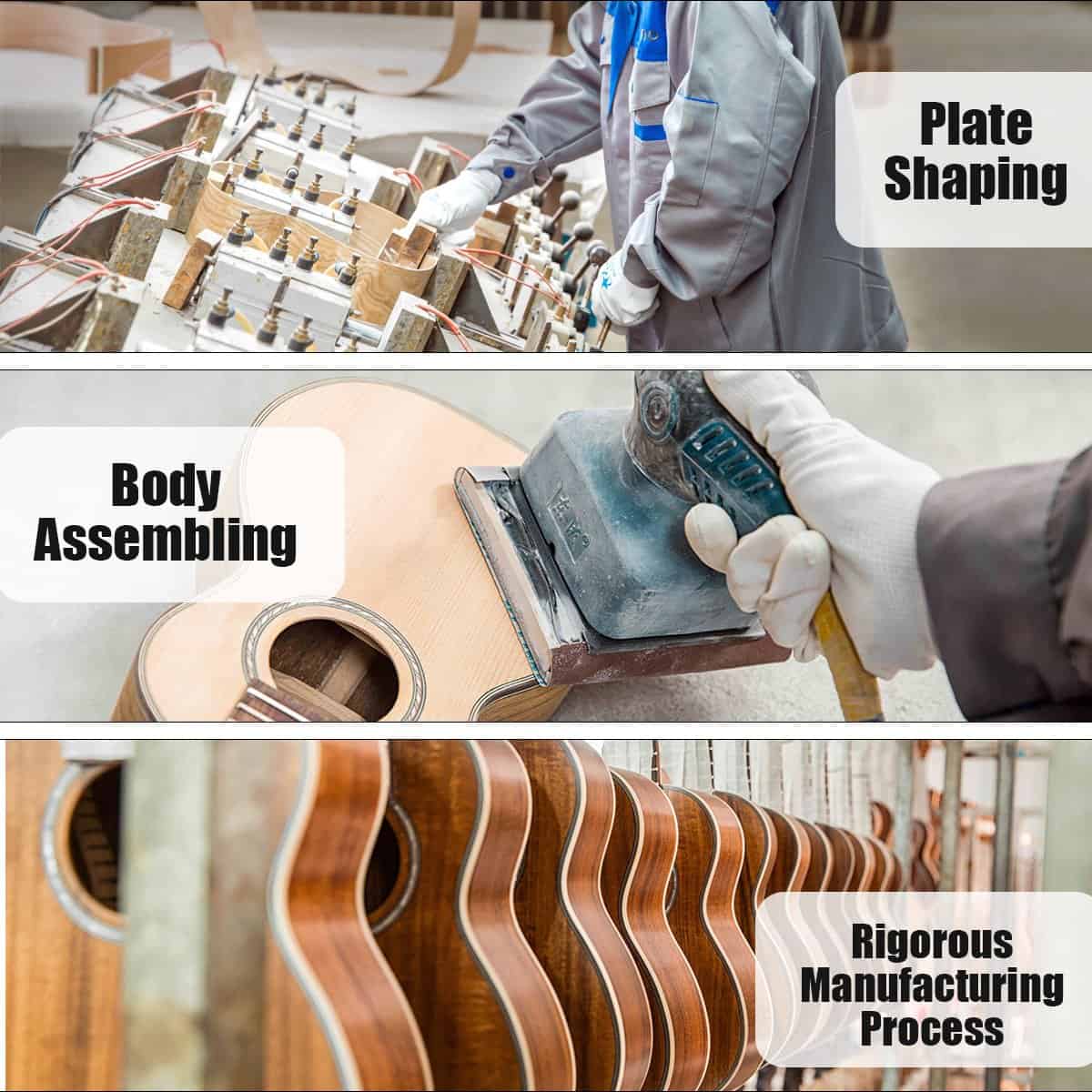 El Diapasón también está hecho de palisandro, y el mástil del ukelele está hecho de madera sólida.
