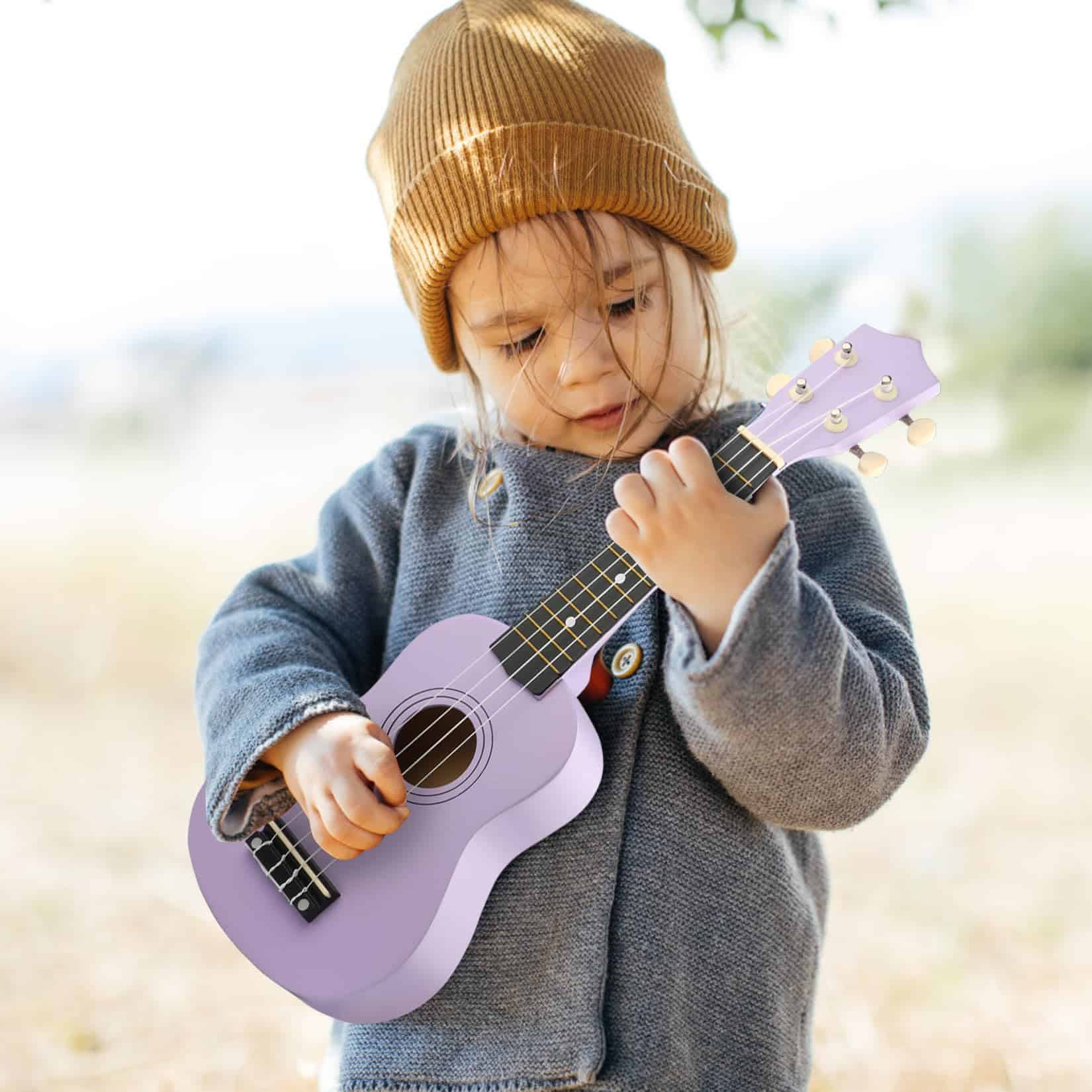 5. Gran Juguete: Diseñado para permitirte crear cálidas armonías hawaianas perfectas, este ukelele soprano es el buen juguete que puedes comprar para niños, estudiantes, amigos y adultos que quieren tocar música.