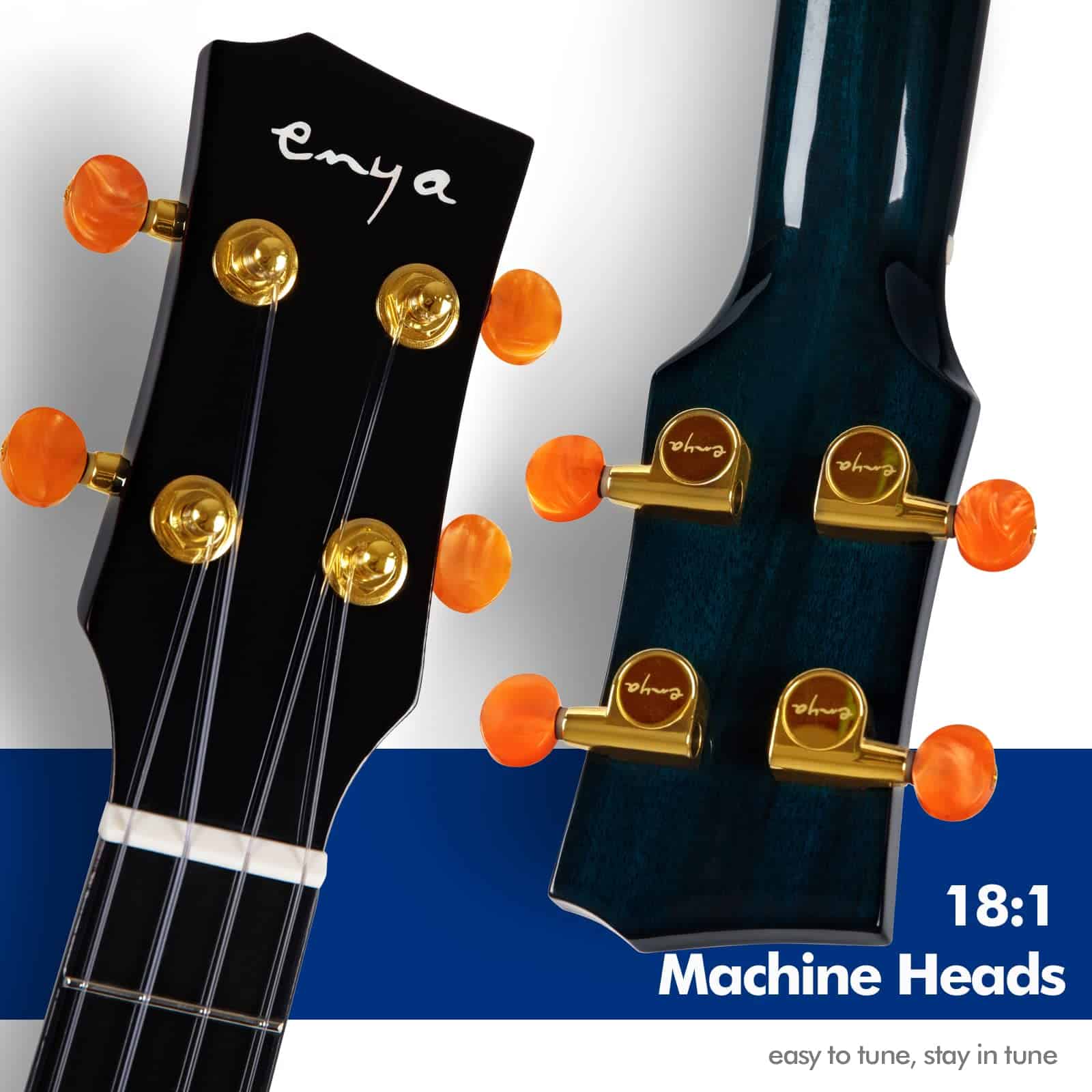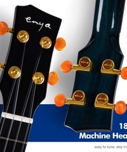 1. Características con todo el cuerpo de caoba sólida, especialmente la cabeza, el mástil y la parte central de atrás son de una pieza de madera de caoba, lo que hace que el ukelele suene cálido, completo y con buena penetración. 2. Hay una incrustación única hecha a mano en el diapasón de richlite, lo que hace que este ukelele sea lujoso y valga la pena ser parte de tu colección. 3. Cada ukelele viene con un sistema de pastilla AcousticPlus, con el que puedes obtener funciones de reverb, chorus y delay sin necesidad de conectar un amplificador. 4. Proceso de barnizado superdelgado durante 18 días que permite que el ukelele suene mucho más completo y que el veteado de la madera se muestre por completo incluso con un acabado colorido. 5. Incluye cuerdas tenor J87 y clavijas de afinación die-cast 1:18 para mantener el ukelele afinado por más tiempo.