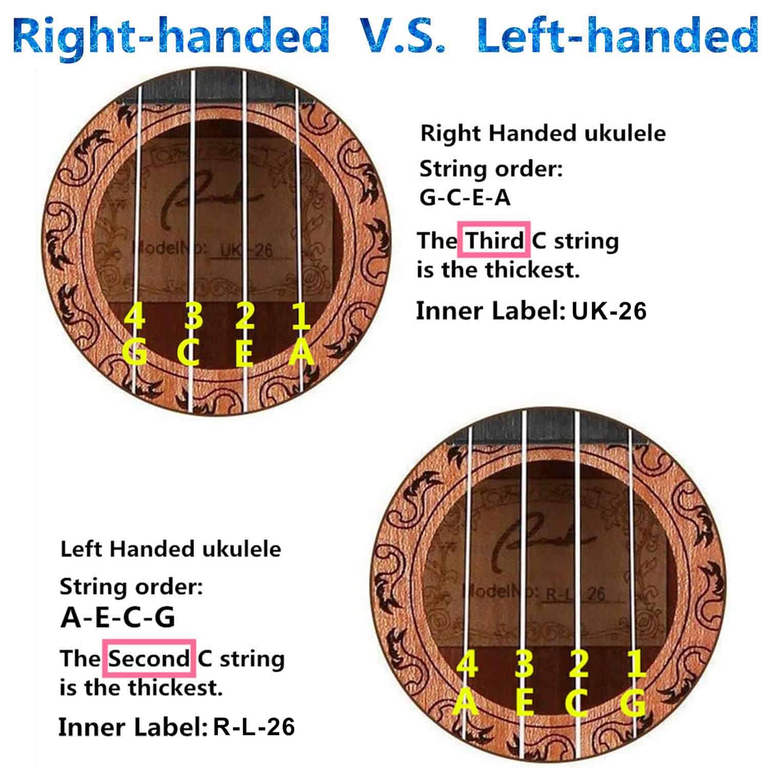 Ukelele Tenor para Zurdos Ranch de 26 pulgadas de Madera