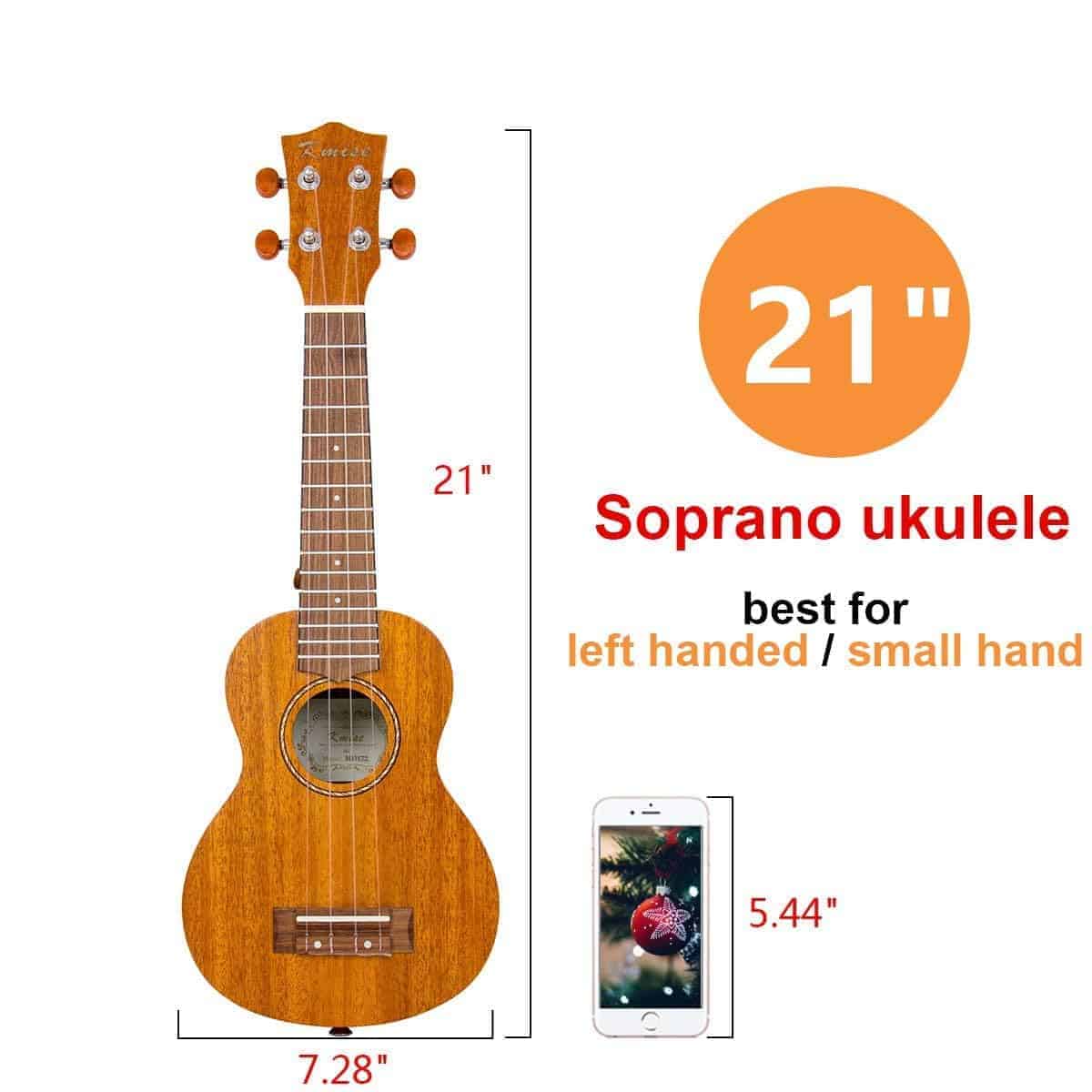 Ukelele zurdo Kmise, Soprano de caoba de 21 pulgadas con