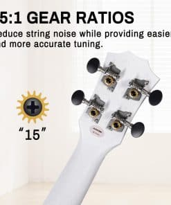 4. Fácil de Afinar y Mantener La perilla de afinación garantiza una afinación precisa y mantiene el ukulele siempre en sintonía. Las cuerdas de nailon suave de alta calidad mejoran la estabilidad de afinación, para que puedas afinar tu ukulele fácilmente en cualquier momento y lugar.