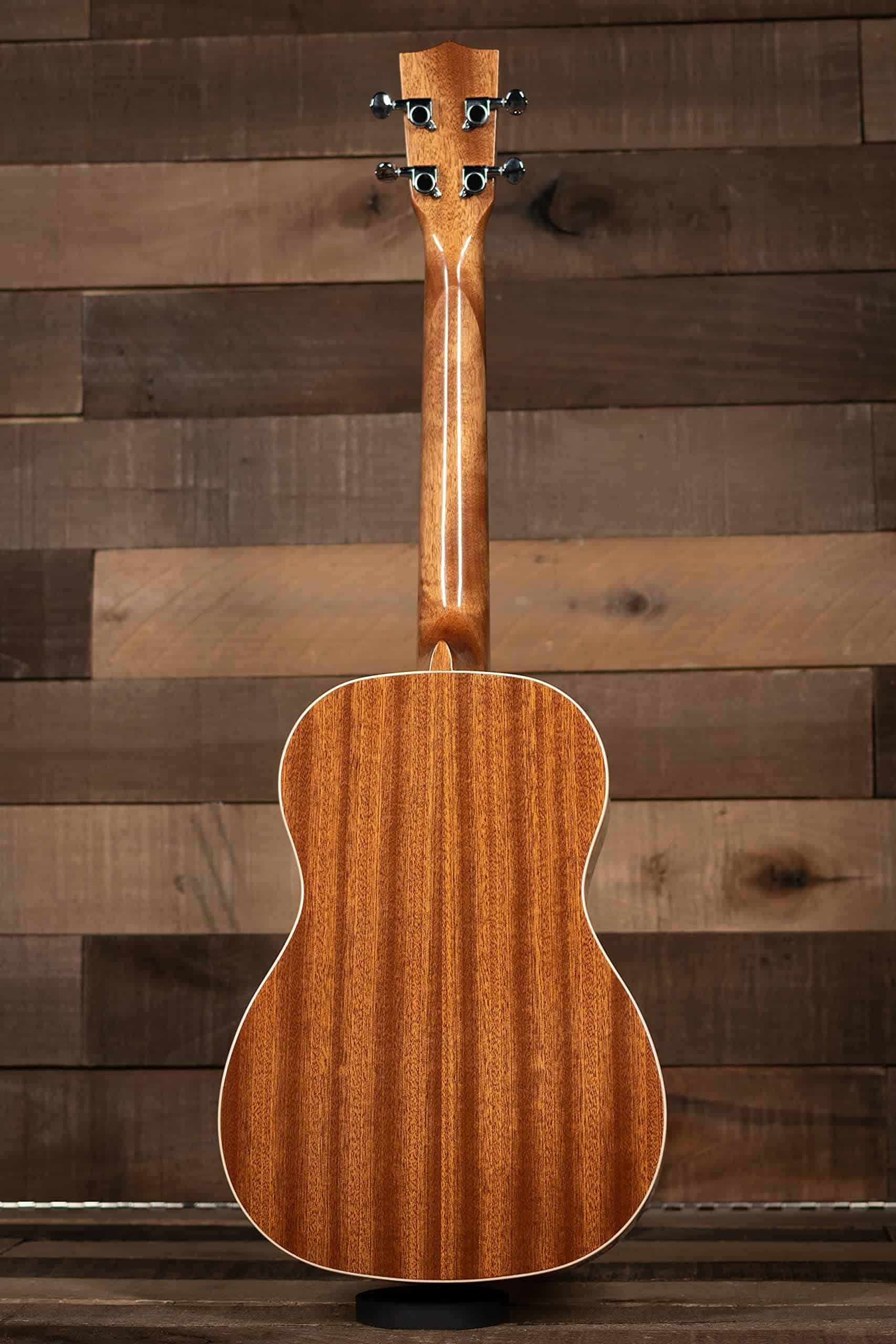 La línea Gloss Mahogany presenta un acabado de alto brillo para realzar la simple elegancia de la veta de madera de caoba. El brillo añade suavidad y robustez al ukelele y un ribete crema lo une todo.