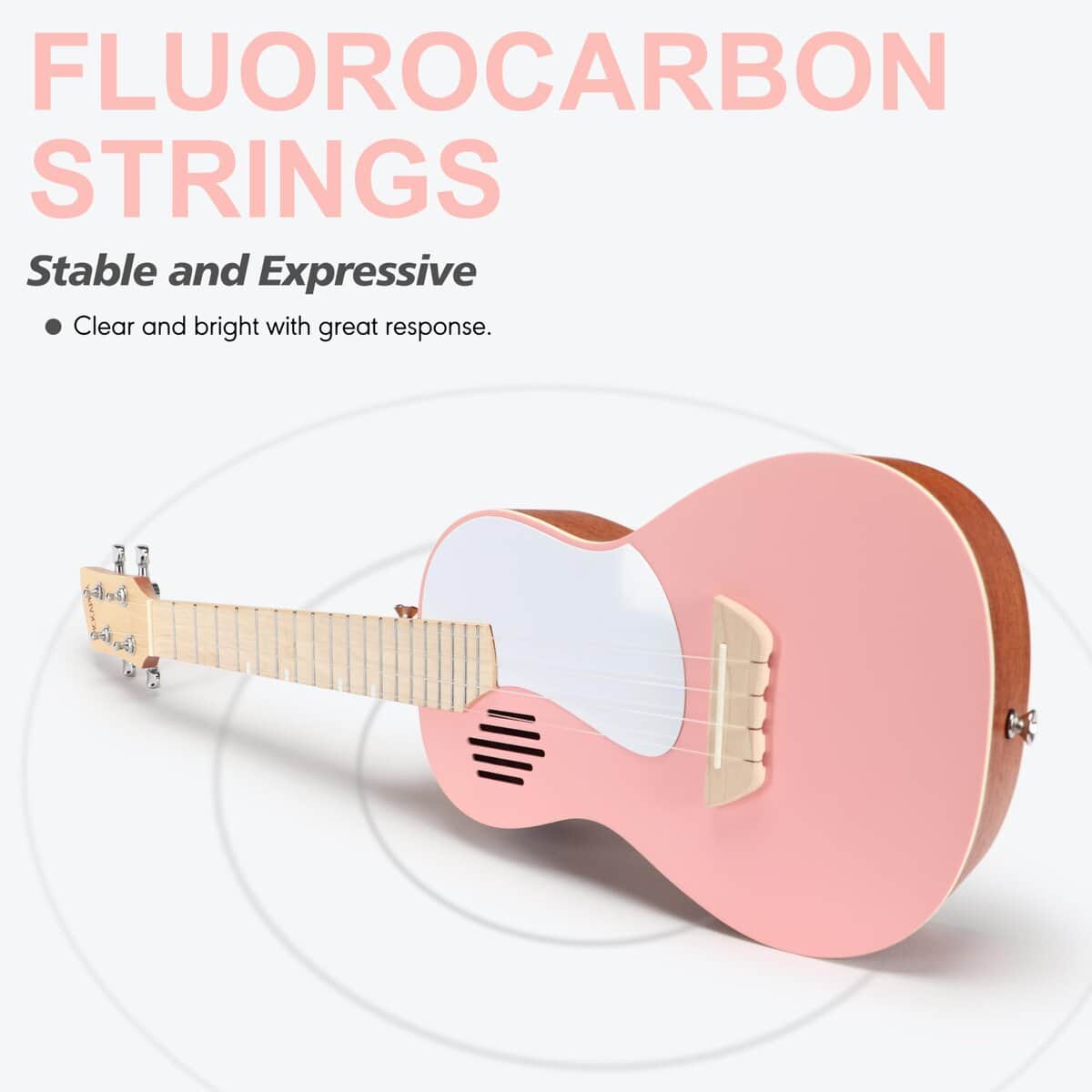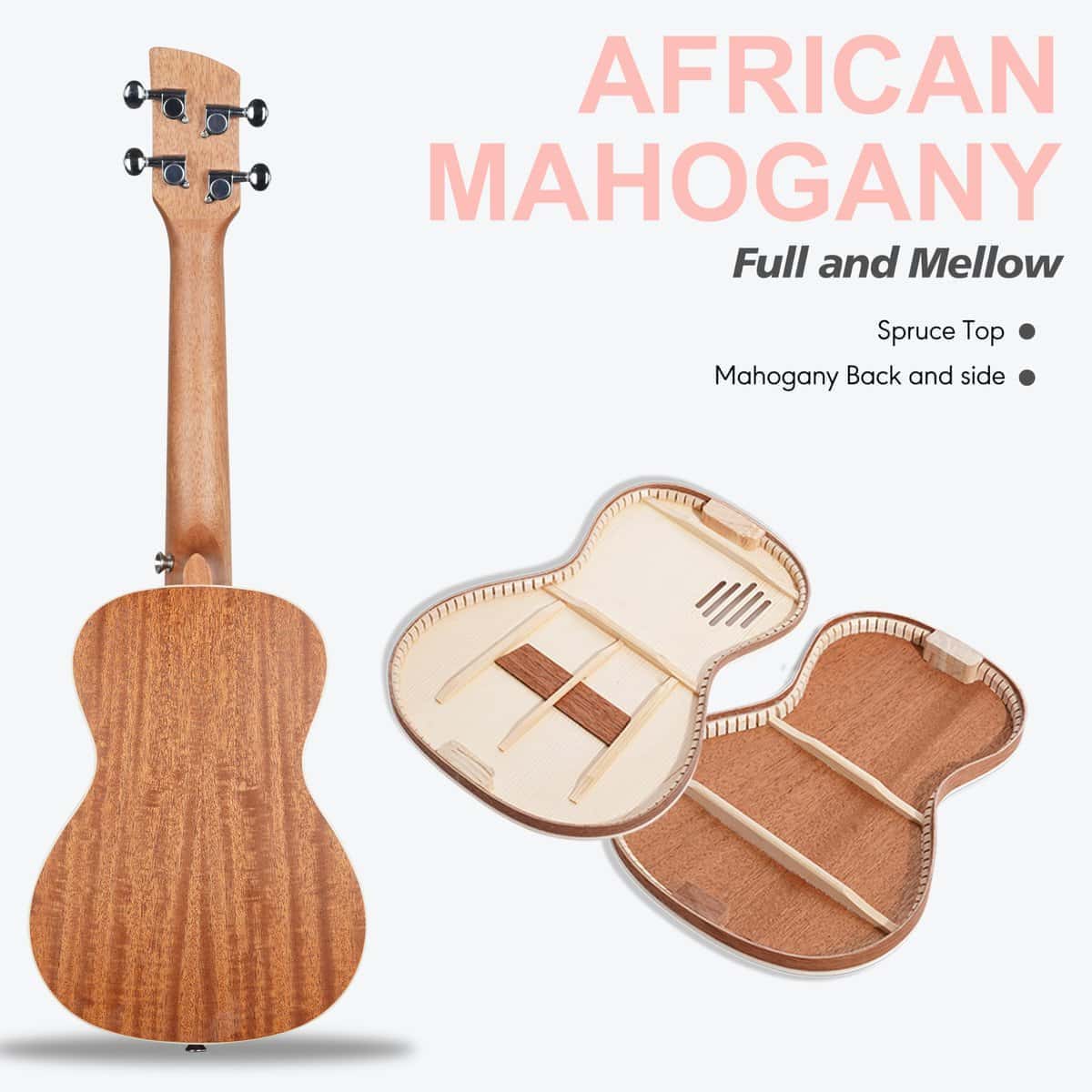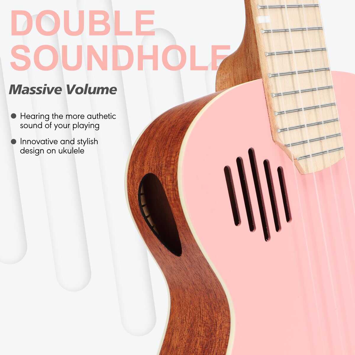 Un Ukulele Novelesco con Una Apariencia Fascinante y un Alma Profesional U23 es una serie de Ukuleles concierto redefinida. El innovador cuerpo OM con una cintura rebajada e inferiores superiores e inferiores más redondeados le ha dado una forma impresionante. Con su mástil, fondo y lados de caoba africana, U23 ofrece un tono dulce y equilibrado. U23 también cuenta con un orificio de monitor de sonido lateral y un orificio de sonido de panal de abeja, que brinda un sonido auténtico incomparable tanto a ti como a la audiencia. U23 es definitivamente único en la industria. Color disponible: Rojo coral, Rosa cereza, Azul cielo, Azul agua, Amarillo sol, negro perla.