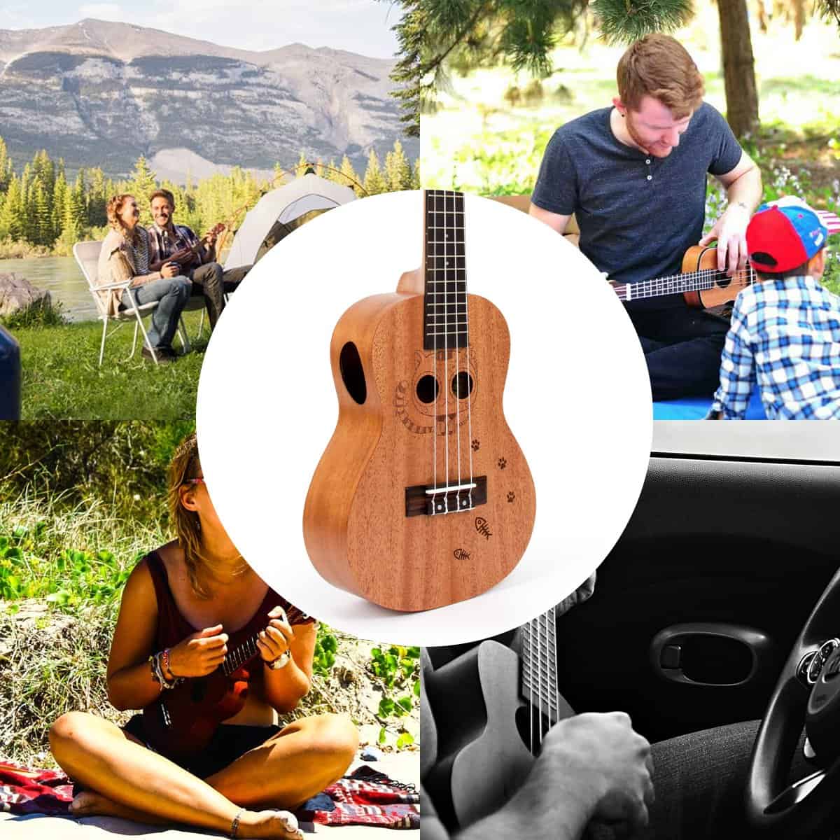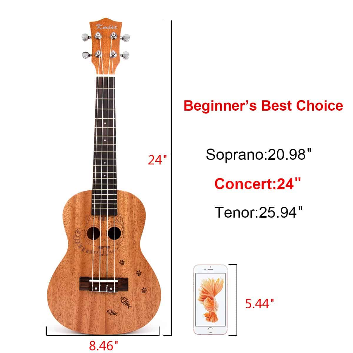 Este ukulele de concierto de 23 pulgadas está hecho de caoba con un diseño tallado de gato. Viene con una bolsa de transporte y un afinador para que puedas empezar a tocar inmediatamente. Perfecto para principiantes y músicos experimentados por igual.