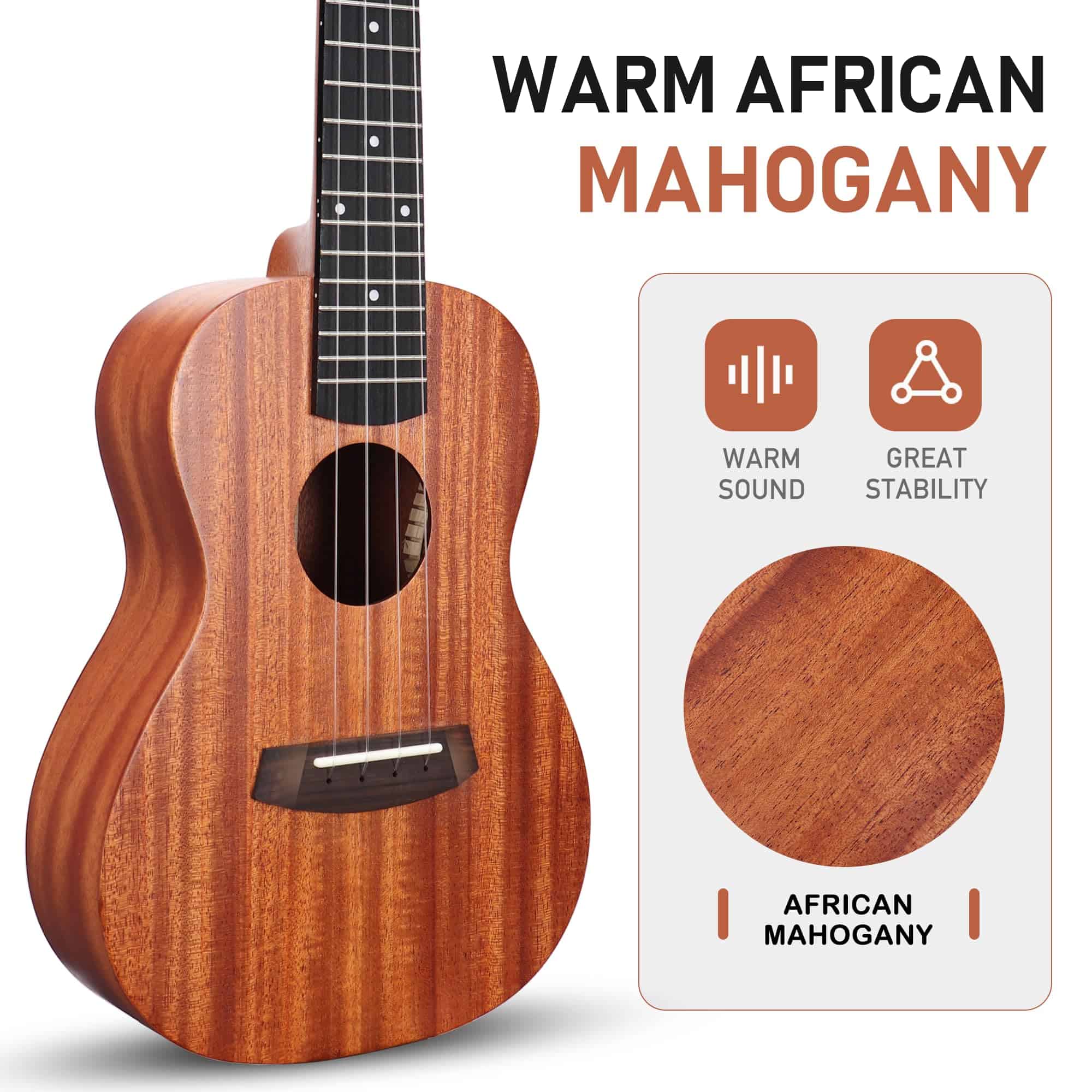 Ukulele Concierto de Caoba Maciza de 23 Pulgadas para