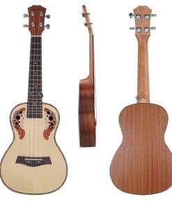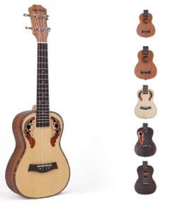 Construimos cuidadosamente cada ukulele y cada uno ha sido probado varias veces, lo que lo convierte en una elección fiable para muchos amantes de la música, profesores de escuela y estudiantes. En el camino de la música, seguimos buscando la innovación y creamos todo tipo de ukuleles. CARACTERÍSTICAS: Aspecto Magnífico: Este Ukulele forma parte de la edición limitada de Mq&Kun, con un aspecto impresionante. Fácil de Tocar: Fue probado antes del envío. El diapasón suave y los trastes ordenados hacen que tocar sea más fácil sin zumbidos y protegen tus manos de arañazos. Todo en uno para Principiantes: Contiene todo lo que necesitas para afinar y tocar. Un Regalo Decente para Amantes de la Música de Todas las Edades: Perfecto para cumpleaños, Navidad, Día de Acción de Gracias, Día del Niño, inicio de clases. Un gran instrumento de aprendizaje para clases de música, autoaprendizaje. INCLUYE: Ukulele X1 Bolsa de Transporte X1 Púas X1 Correa X1 Cuerdas X1 Afinador X1 Capo X1 Paño de limpieza X1 Manual para principiantes X1