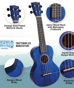 Ukulele de Concierto de la Serie MH2 Azul Transparente. El Ukulele de Concierto Mahalo Hano Series MH2 viene en una selección de divertidos colores, todos con acabado brillante. Los artesanos expertos de Mahalo han seleccionado las mejores maderas de Indonesia para traerte el Ukulele de la Serie Hano de Mahalo. Para reproducir el mejor tono posible, utilizan caoba para construir diapasones y puentes y Segnon exótico para los cuerpos y mástiles. Se aplica un distintivo acabado brillante a cada Ukulele de la Serie Hano de Mahalo para revelar la belleza inherente y calidad de las maderas tonales y para realzar cada matiz musical. Completo con bolsa de transporte Mahalo, los Ukuleles de la Serie Hano de Mahalo cuentan con una espalda arqueada y selletas de puente Extended Bass (XB) de Canadian NuBone de última generación para aumentar la proyección y respuesta de graves. También se instalan cuerdas Aquila en los ukuleles para producir un sonido más completo, más potente y más equilibrado, rico en armónicos tonales. Te sorprenderá la calidad y el rendimiento de los Ukuleles de la Serie Hano de Mahalo.