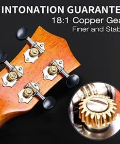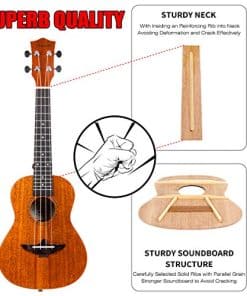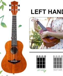 Este ukelele de concierto está diseñado especialmente para músicos zurdos. Viene con un estuche, púas, afinador, correa, cuerda y paño de limpieza, todo lo que necesitas para empezar a tocar. Con la mejor máquina afinadora y cuerdas Aquila, el ukelele se mantiene en sintonía incluso después de asentarse. Hemos redondeado los bordes del ukelele para mayor comodidad, añadido una costilla en el mástil para mayor resistencia y diseñado el talón del mástil en forma de cola de milano para mayor solidez contra impactos. La altura de las cuerdas está ajustada para facilitar la ejecución. Además, ofrecemos un tutorial gratuito para principiantes en nuestro sitio web, Facebook y canal de YouTube. Con lecciones de enseñanza y un set completo de accesorios, aprenderás lo básico para tocar el ukelele en 30 minutos. También ofrecemos una garantía de devolución de dinero de 60 días. Contáctanos si tienes algún problema con tu ukelele y haremos todo lo posible por solucionarlo.