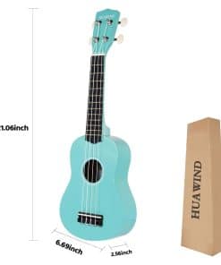 HUAWIND serie arcoíris de 21 pulgadas ukulele, disponible en colores marrón, marrón mate, rosa, azul claro y azul oscuro. Cada ukulele está hecho de madera natural secada al aire durante años y equipado con cuerdas de nylon de alta calidad. Con un diseño de cuerpo pequeño y ligero, es la mejor opción como regalo para niños. El ukulele es uno de los instrumentos musicales más fáciles de aprender. Este ukulele está equipado con una funda, afinador, púas y cuerdas adicionales. Especificaciones: Tamaño de 21 pulgadas, tipo Ukulele, Forma del cuerpo Dreadnought, Color marrón mate, Tapa de madera de tilo, Cuerpo y fondo de tilo, Número de trastes: 12, Diapasón: Madera dura, Material del mástil: Arce, Cuerdas: Cuerdas de nylon, Acabado: Brillo. Paquete incluye: 1 Ukulele, 1 Funda, 1 Cuerda de nylon para ukulele, 2 Púas, 1 Paño de pulido, 1 Afinador.