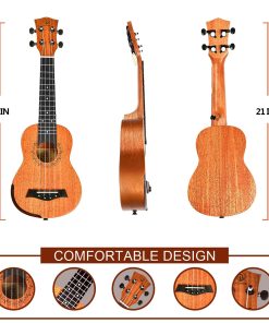 4. SET DE ACCESORIOS: Ukulele soprano de 21″ de caoba viene con los accesorios necesarios, un afinador, una correa, tres púas, una bolsa de transporte y un manual para principiantes.