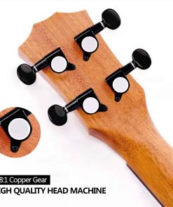 1. MATERIAL SELECCIONADO: Ukulele soprano tradicional con cuerpo y mástil de caoba seleccionados, diapasón y puente de madera de corazón púrpura, cuatro cuerdas Aquila instaladas (mejores cuerdas de ukulele).