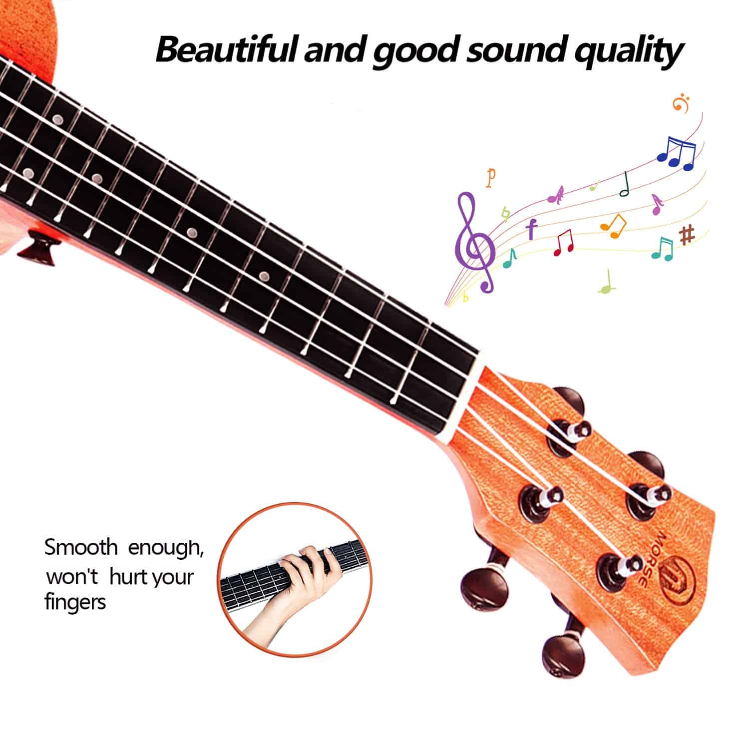 3. BUEN SONIDO: El cuerpo y mástil de caoba del ukulele ofrecen un sonido más rico, brillante y cálido.