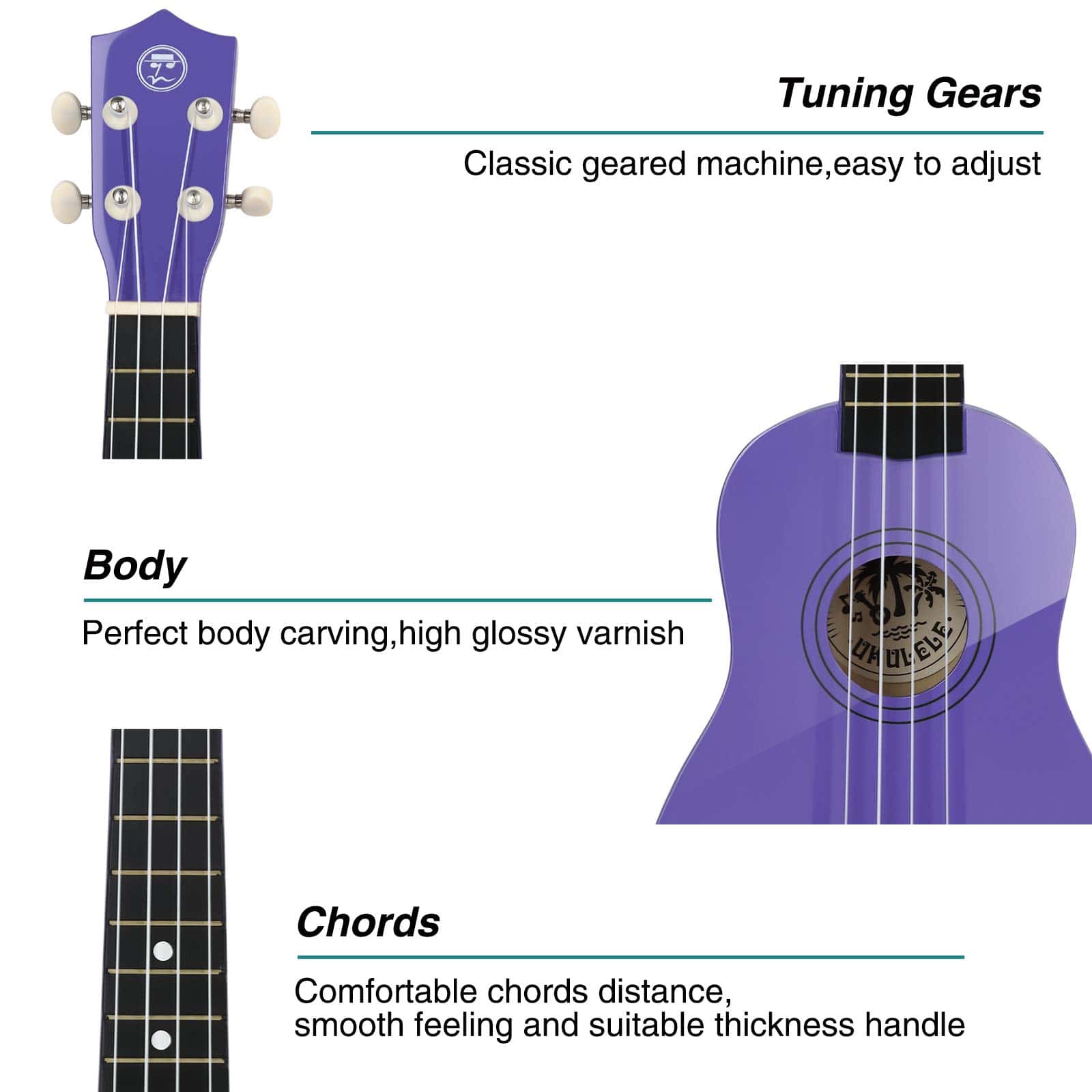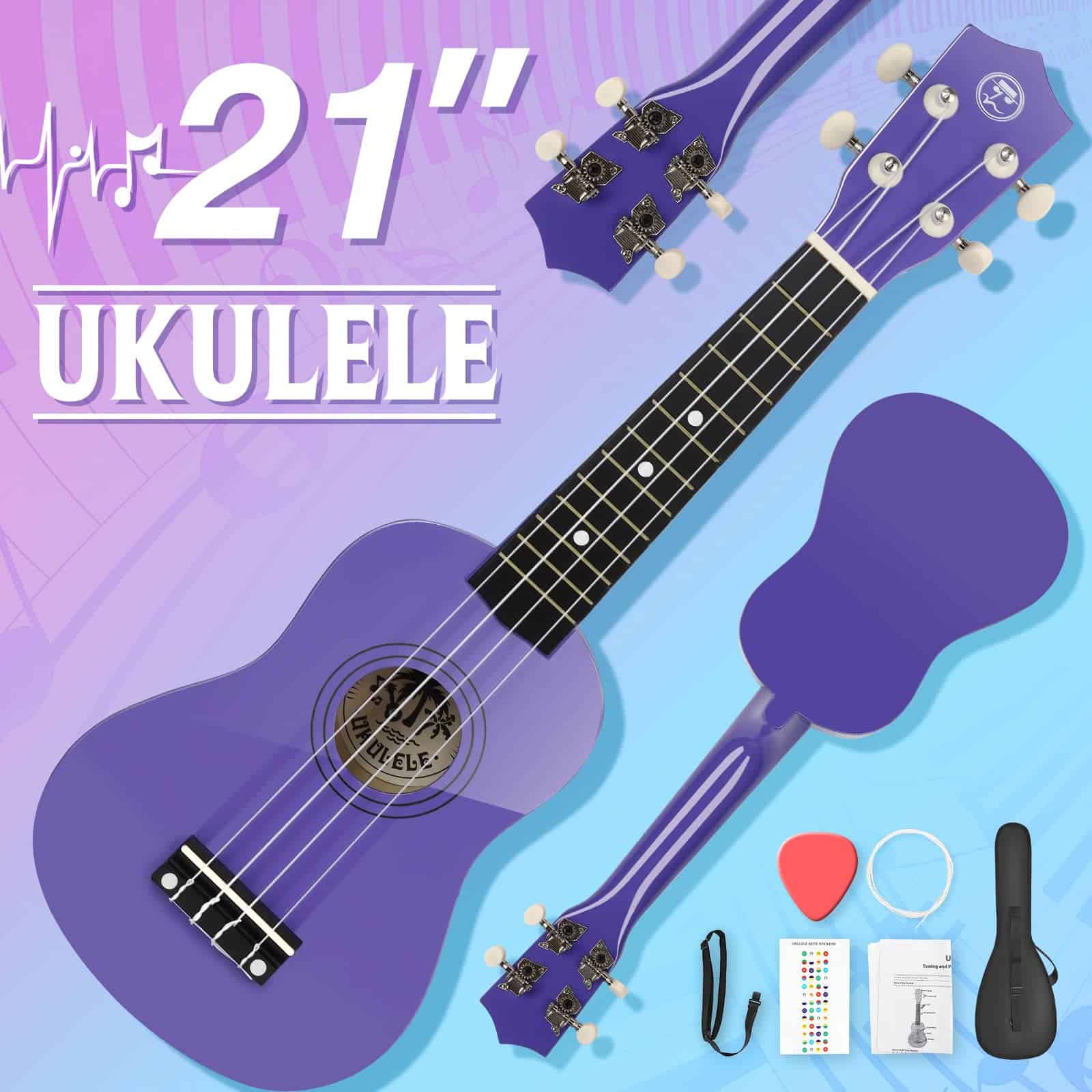 Convirtiéndose rápidamente en uno de los instrumentos musicales para principiantes más populares, el Ukulele es fácil de aprender y, debido a su tamaño, es ideal para niños y adultos, lo que lo convierte en la elección perfecta para aquellos ansiosos por aprender un instrumento. Características: 1. Alta calidad: – Armazón de madera natural – Acabado de alto brillo – 4 cuerdas de nylon suaves – Tono brillante y nítido 2. Fácil de tocar: – Puntos en el diapasón para guiar el aprendizaje – Distancia adecuada entre cuerdas para principiantes – Diapasón suave con 12 trastes – Ligero y fácil de transportar – Perfecto para principiantes, niños, aprendices avanzados 3. Set completo de accesorios: – 1x Cuerdas extra, 1x Púas para dedos, 1x estuche de viaje, 1x Correa, 1x Adhesivos para diapasón y 1x Instrumento. Especificaciones: Tamaño: 21 pulgadas con 4 cuerdas de nylon. Material del cuerpo: Madera de tilo Material del diapasón: Abedul Afinador: Cromo y Sellado Tuerca y selleta: Plástico Material de las cuerdas: Cuerda de Nylon Peso del producto: 1.5lbs