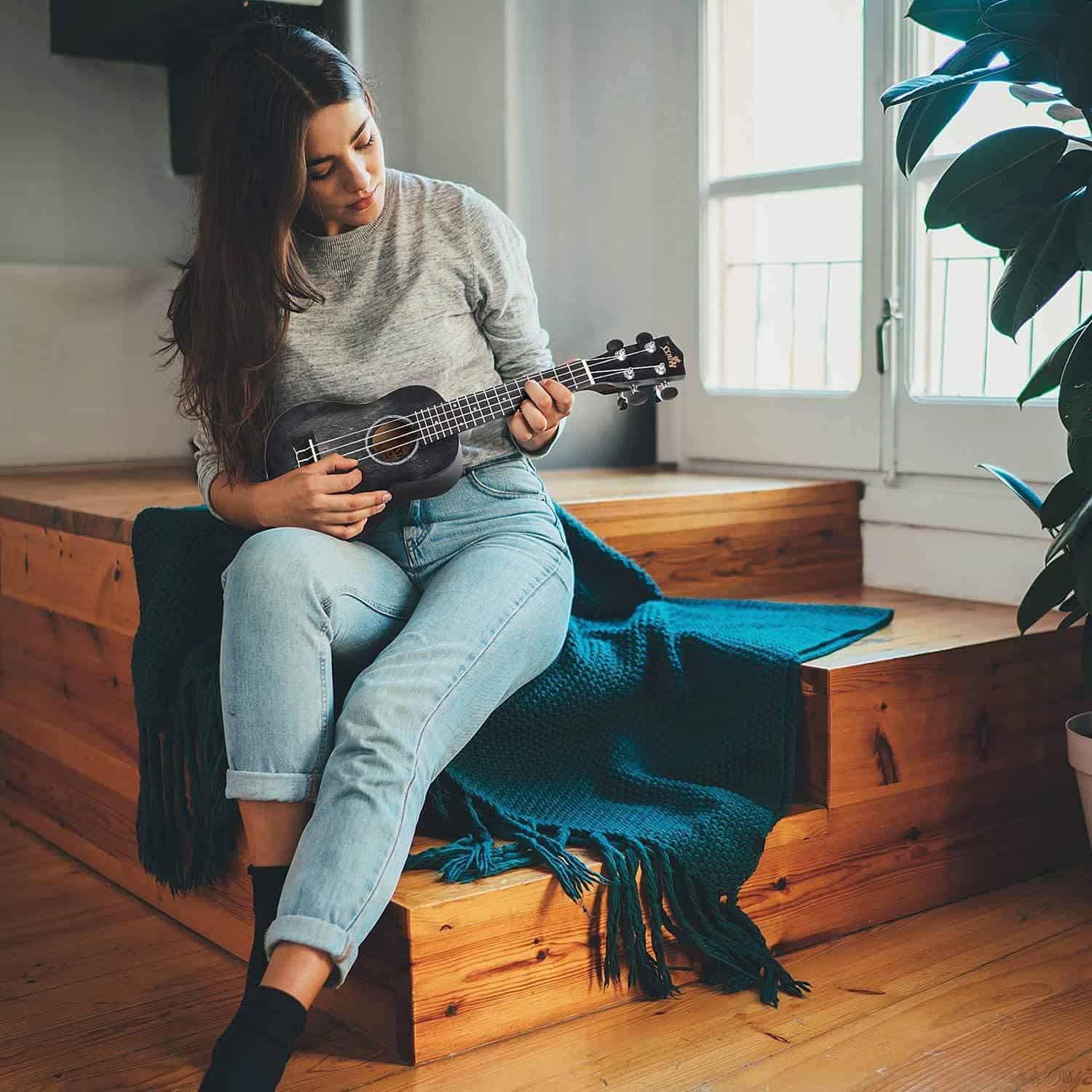 Materiales: Tapa y cuerpo: contrachapado de tilo /p Parte trasera y lateral: contrachapado de tilo /p Diapasón y puente: madera técnica /p Tamaño: Tamaño total: 21″ x 6.9″ x 2.4″ /p Longitud de escala: 13.5″ /p