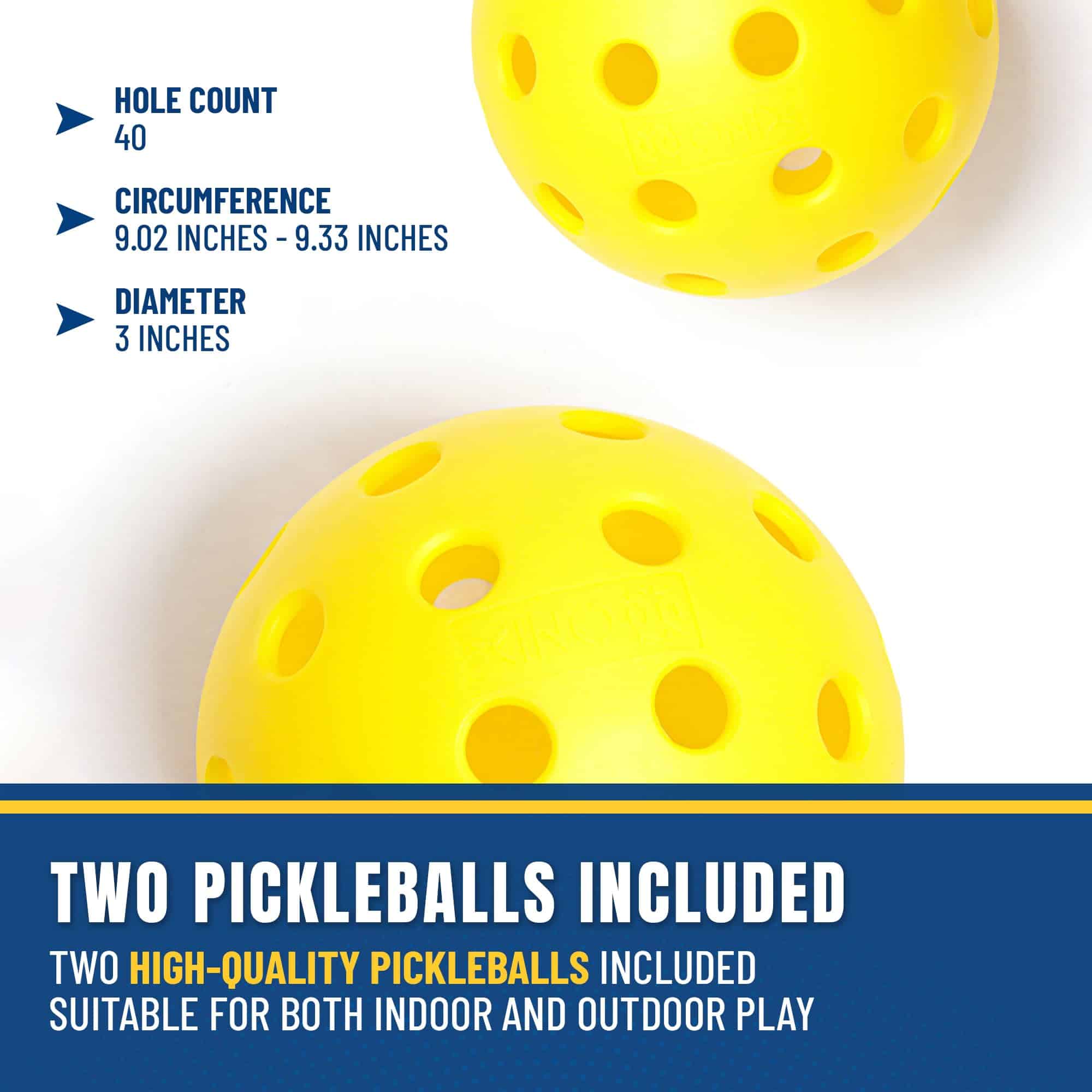 3. Listo para la Acción: Incluye dos pelotas de pickleball de alta calidad, adecuadas para jugar tanto en interiores como en exteriores.