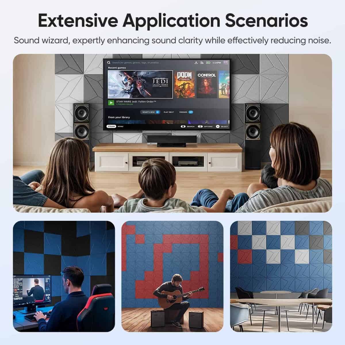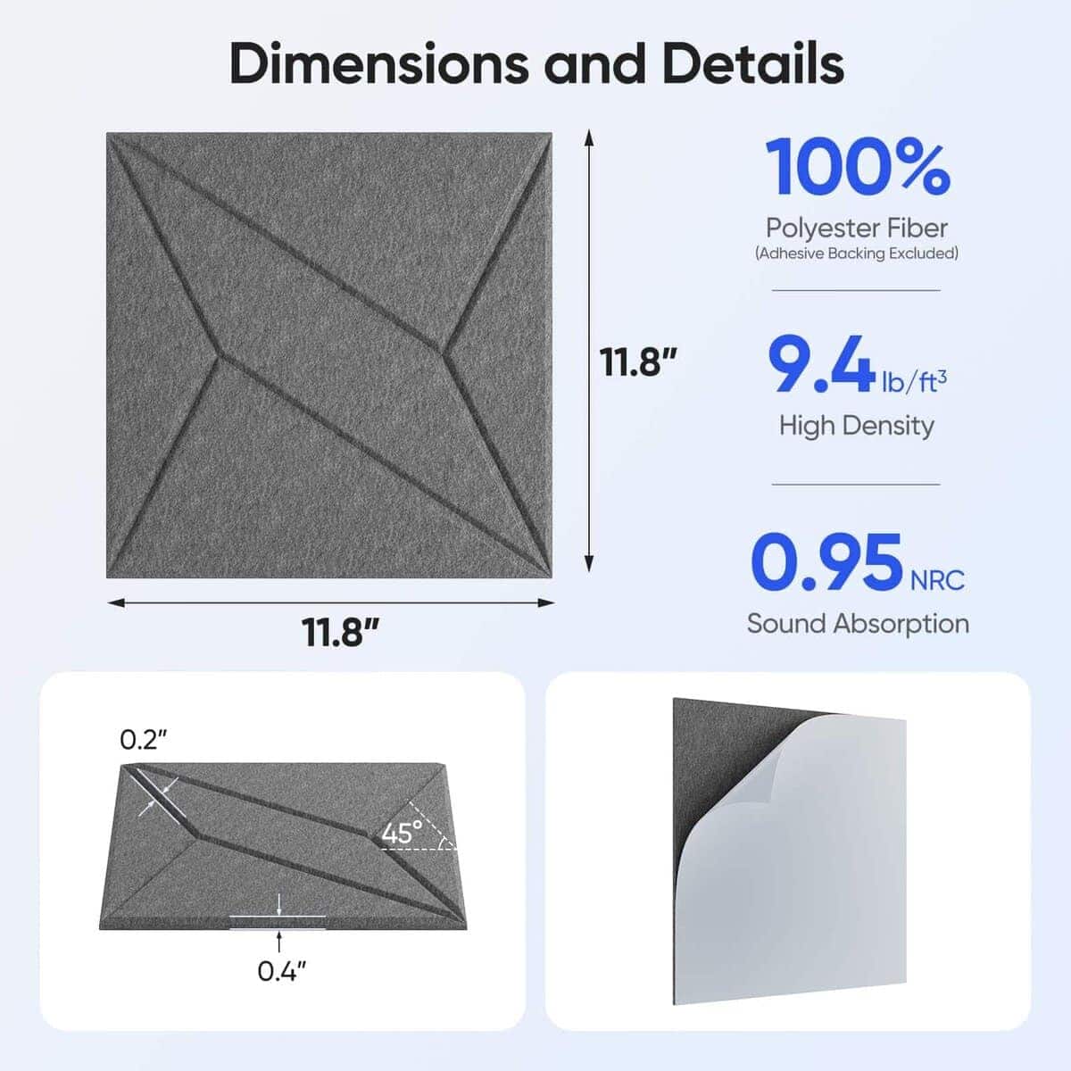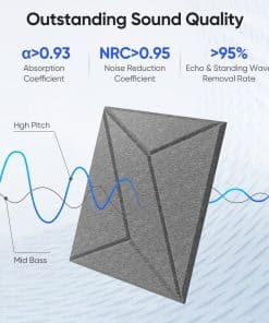UNECHO 12 Pack 11.8″ X 11.8″ X 0.4″ Paneles Acústicos para Pared Absorbentes de Sonido, Paneles de Sonido Autoadhesivos en Forma de P-Rayas Cuadradas, Alta Densidad Adecuados para Múltiples Escenarios (Gris Luna) – Hechos con fibra de poliéster de alta densidad (420 lb/m ), nuestros paneles UNECHO logran un coeficiente de absorción de sonido de hasta 0.95, reduciendo efectivamente el eco y el ruido ambiental en tu espacio. Los nuevos paneles acústicos presentan elegantes V-grooves cortados con precisión, agregando textura sofisticada, profundidad y un estético moderno a cualquier habitación. Los paneles son fáciles de cortar, disponer y combinar, permitiéndote crear arte de pared acústico personalizado. La alineación cuidadosa de las rayas grooves resulta en una textura impresionante y un rico sentido de profundidad espacial, mejorando el atractivo visual de tu espacio. Cada panel acústico viene con un respaldo autoadhesivo fuerte, simplemente despega y pega, sin necesidad de herramientas, clavos o adhesivos adicionales. Hechos de 100% fibra de poliéster, nuestros paneles UNECHO son inodoros, reciclables y seguros para uso en interiores, pasando por un estricto control de calidad. Si encuentras algún problema, nuestro equipo de soporte está listo para ayudarte en 24 horas.