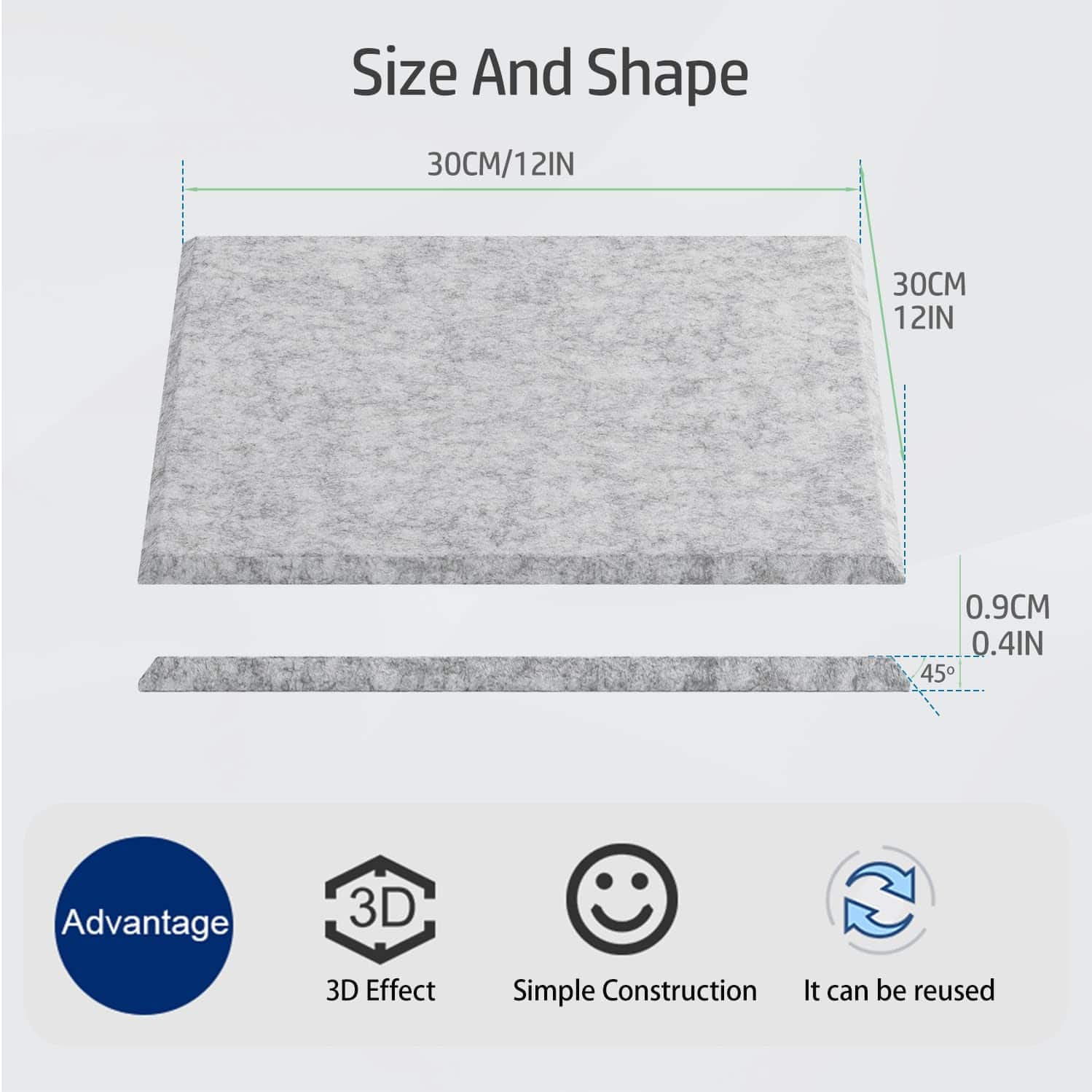 3. Easy Installation All our acoustic panels come with self-adhesive backing. No additional tools are required simply peel off the backing and stick them wherever you need.