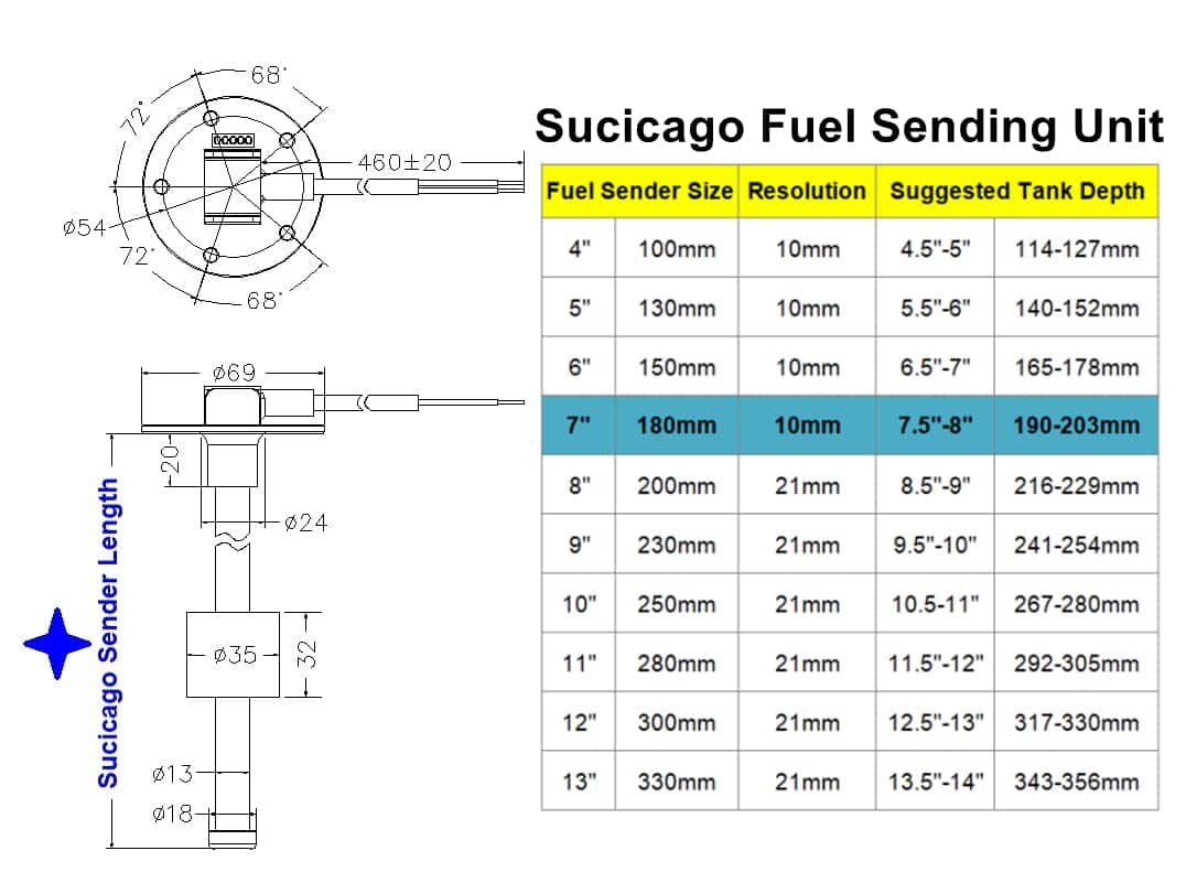 La unidad de envío de medidor de gas de acero inoxidable Sucicago es mucho más precisa y confiable que el antiguo sistema de palanca y flotador. El cliente puede comprar en conjunto con un medidor de nivel de combustible Sucicago o medidor de nivel de agua. Están diseñados para monitorear el nivel de combustible, diésel, gasolina o agua en el tanque.