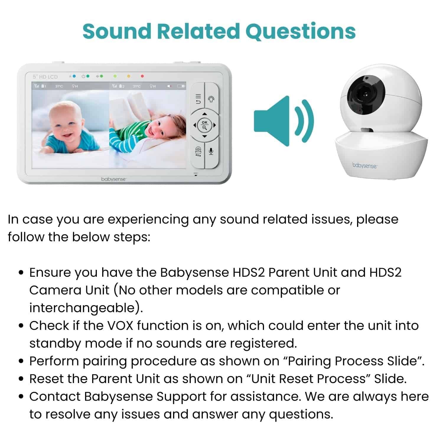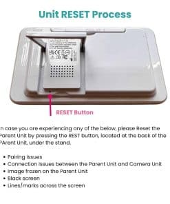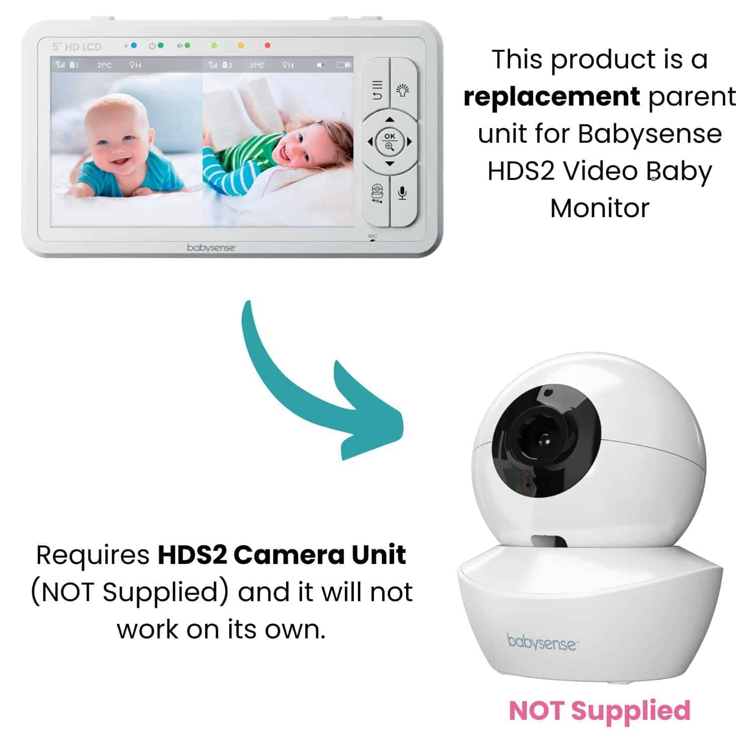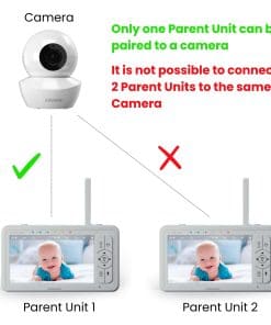 Este producto es una unidad de padres de reemplazo para el Monitor de Video Babysense HDS2. Este producto requiere una Unidad de Cámara HDS2 adicional (NO suministrada) y no funcionará por sí solo. No funcionará con ningún otro modelo. Tenga en cuenta que no es posible conectar dos unidades de padres a una cámara, solo se puede conectar una unidad de padres. Pieza de reemplazo original de Babysense. Lea las instrucciones antes de usar. PROCESO DE EMPAREJAMIENTO: Para emparejar su unidad de padres con una cámara, siga el procedimiento a continuación: NOTA: Antes de comenzar el emparejamiento, asegúrese de tener la Cámara HDS2 y esta Unidad de Padres juntas y encendidas. Presione el botón de MENÚ para acceder al menú, elija Icono de Cámara y presione la opción EMPAREJAR. Navegue con las flechas para seleccionar la cámara que desea emparejar. Presione y mantenga presionado el botón «EMPAJAR» en la parte inferior de la Unidad de Cámara hasta que el emparejamiento sea exitoso. Presione el botón «SALIR» para salir del menú. En caso de que la unidad se apague, verifique la configuración de VOX en el Menú.
