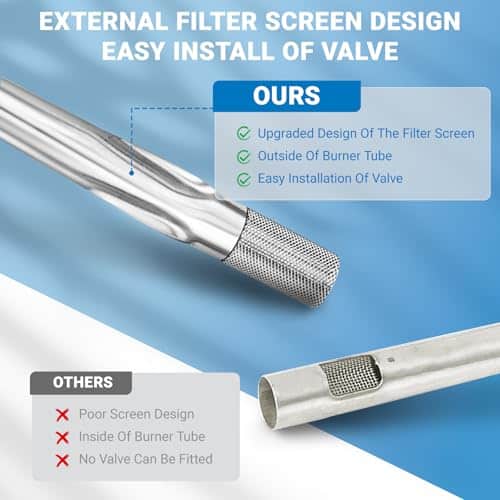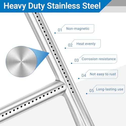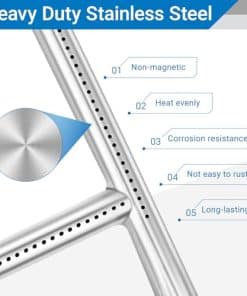 Este conjunto de quemadores de repuesto Uniflasy 65032 está diseñado específicamente para adaptarse a los modelos Weber Q300 y Q3000. Si está actualizando su parrilla Weber más antigua al modelo Q300 o Q3000, este quemador de reemplazo es la solución perfecta. Fabricados con acero inoxidable 304 de alta calidad, estos quemadores son duraderos, resistentes al óxido y proporcionan un rendimiento de cocción excepcional. Con una instalación sencilla y segura gracias a los tornillos de acero inoxidable incluidos y las instrucciones detalladas, puede estar seguro de que estos quemadores se mantendrán firmemente en su lugar durante la cocción. La pantalla de ventilación exterior garantiza una distribución uniforme del calor en toda la superficie de cocción, mientras que el flujo de gas consistente asegura alimentos perfectamente cocinados en cada uso. Restaure su parrilla Weber a su desempeño original sin el alto costo de las piezas OEM con este conjunto de quemadores de calidad y asequibles.