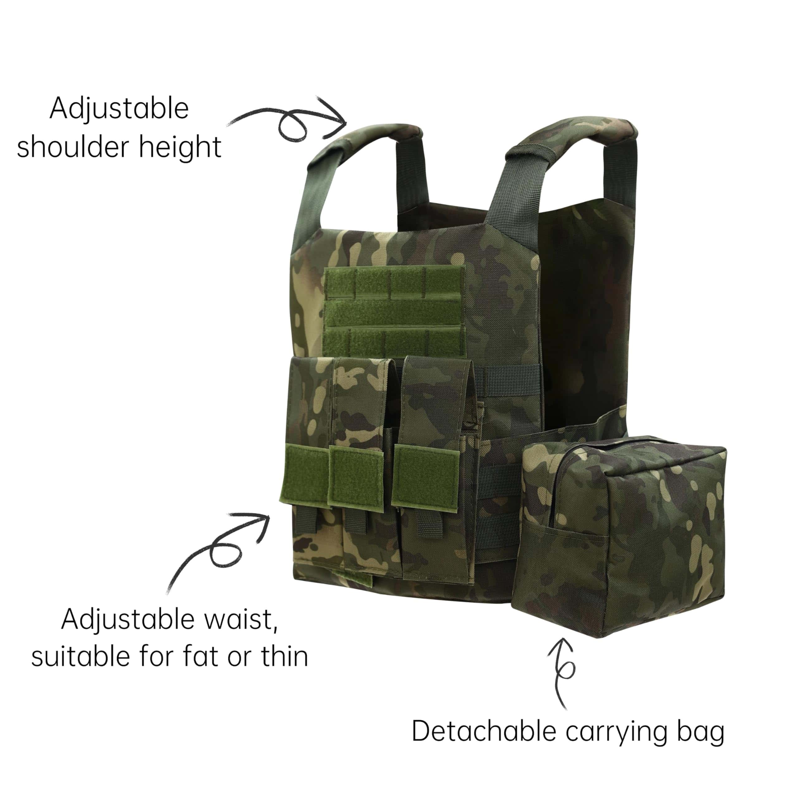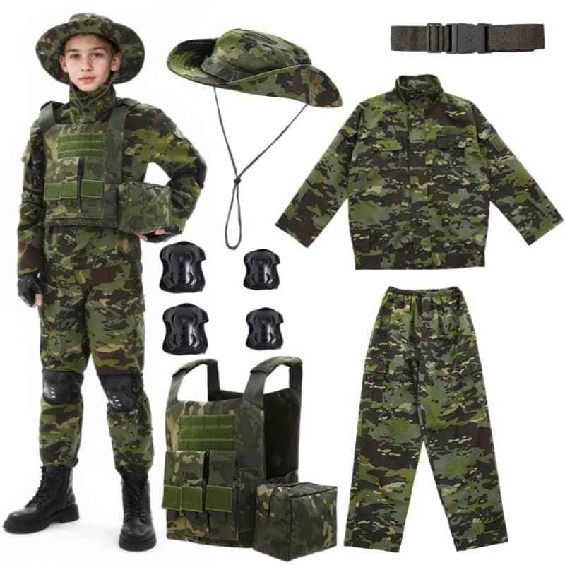 Desbloquea la imaginación de tu hijo y déjalo experimentar la emoción de la aventura con este uniforme de camuflaje estilo militar. El disfraz completo incluye una chaqueta y un chaleco táctico, un par de pantalones y un sombrero a juego, todos hechos de tela de camuflaje duradera y transpirable. El chaleco cuenta con múltiples bolsillos y correas ajustables, perfecto para almacenar elementos esenciales y garantizar un ajuste seguro. Viene con refuerzos para rodillas y codos para una protección adicional durante el juego. Este disfraz permite que tu pequeño se embarque en misiones emocionantes, ya sea explorar al aire libre o defender un fuerte. Con detalles realistas y una construcción cómoda, este disfraz proporcionará horas de diversión imaginativa mientras fomenta sentimientos de valentía y confianza. Anima el amor de tu hijo por la aventura y deja que se convierta en un valiente soldado con este encantador uniforme de camuflaje.