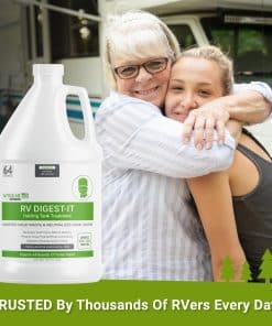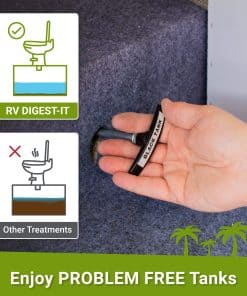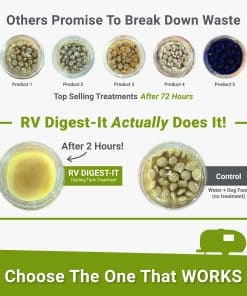 Disfruta de tu RV. Deja tus tanques a nuestro cargo. Deja de preocuparte por tus tanques de almacenamiento y pasa más tiempo disfrutando de tu RV! Más que un desodorizante, el tratamiento enzimático para tanques negros de RV Digest-It garantizará que tus tanques se mantengan libres de olores, acumulación de residuos y obstrucciones. ¿Tu tratamiento para inodoros de RV funciona Descomponer los residuos sólidos es fundamental para un buen tratamiento de tanques de RV. Casi todas las marcas de tratamiento de tanques negros para RVs afirman descomponer los residuos sólidos dentro de los tanques de almacenamiento, pero ¿tu marca de productos químicos para inodoros de RV cumple con sus afirmaciones RV Digest-It no solo es utilizado por miles de RVers todos los días, sino que también es el tratamiento de tanque de desechos más recomendado por los técnicos de RV. El clásico tratamiento para tanques sépticos de RV, disuelve residuos humanos y todo tipo de papel higiénico, un eliminador de olores bioenzimático que no enmascara los olores, los elimina. También puede usarse en tanques grises, no contiene formaldehído ni bronopol, no dañará ni degradará sellos o válvulas, cumple con todas las leyes estatales de vertido, no contiene productos químicos ocultos, orgullosamente fabricado en EE. UU. Las divulgaciones de ingredientes se basan en la mejor información disponible proporcionada por nuestros proveedores de materias primas.