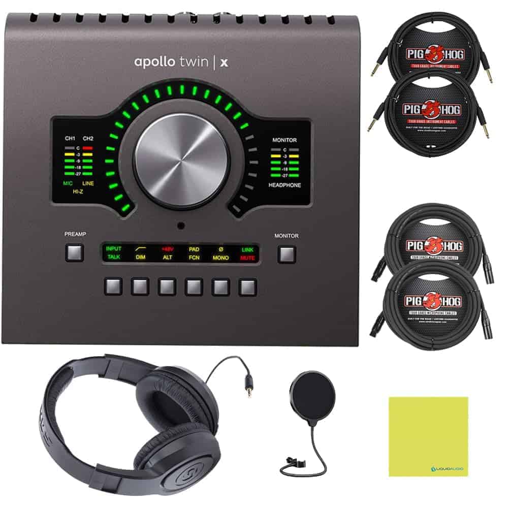 El Universal Audio Apollo Twin X DUO Heritage Edition Interface Bundle es una solución completa para grabación de audio de alta calidad. Este paquete incluye la interfaz de audio Apollo Twin X DUO con la edición Heritage, auriculares estéreo Samson SRH350, cables de micrófono XLR de 8mm Pig Hog PHM20, cables de instrumento «Black Woven» Pig Hog PCH10BK, filtro pop Liquid Audio y paño de pulido Liquid Audio. La interfaz Apollo Twin X DUO ofrece una conversión de audio de clase elite con resultados de producción de éxito y emulaciones de preamplificador de micrófono clásicas. Con conversión A/D y D/A rediseñada, disfrutará de un rango dinámico aumentado y un THD ultra bajo. Con la capacidad de grabación en tiempo real y la integración perfecta con hasta cuatro Apollos para capacidades expandidas, esta interfaz le permite grabar voces y sintetizadores con latencia casi nula. Además, el paquete incluye una variedad de plug-ins profesionales, auriculares estéreo de alta calidad, cables de micrófono e instrumento confiables y un filtro pop para sesiones de grabación limpias y libres de ruidos no deseados. Ya sea que sea un músico, productor o ingeniero de grabación, el Universal Audio Apollo Twin X DUO Heritage Edition Interface Bundle es una elección excelente para cualquier proyecto de audio profesional.