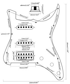 Especificación: Pickguard de repuesto perfecto para tu guitarra eléctrica. 11 agujeros de montaje en el guardia cargado, con una pastilla humbucker y dos pastillas de bobina simple, configuración S-S-H. No puedo garantizar que los agujeros de los tornillos se alineen con los de tu guitarra dada la gran variedad de modelos en el mercado. Incluye: 1 x Pickguard SSH Cargado, 20 tornillos negros, 20 tornillos plateados, 6 Cuerdas de Guitarra, 1 x Bobinador de Cuerdas 3 en 1, 1 x Destornillador
