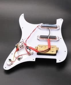 Especificaciones: Reemplazo perfecto para el pickguard de tu guitarra eléctrica. 11 agujeros de montaje cargados, con un humbucker y dos pastillas individuales, configuración S-S-H. No se puede garantizar que los agujeros de los tornillos se alineen con los de tu guitarra debido a la gran variedad de modelos en el mercado. Incluye: 1 x Loaded Pickguard SSH, 20 tornillos negros, 20 tornillos plateados, 6 x Cuerdas de Guitarra, 1 x Devanador de Cuerdas 3 en 1, 1 x Destornillador