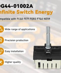 Reemplazo de alta calidad para el interruptor infinito DG44-01002A, diseñado para brindar una operación estable y duradera en estufas y hornos Samsung. Este interruptor de energía es compatible con una variedad de modelos, incluidos FCQ3, FE71, FER3, FTQ3, NE59. Además de ofrecer protección contra sobrecalentamiento, este regulador de energía está fabricado con materiales confiables como PVC resistente a altas temperaturas y metal de alta calidad para garantizar durabilidad y confiabilidad en su uso diario. La instalación es sencilla y se recomienda comprobar la compatibilidad con su modelo específico antes de la compra para una adecuada instalación y funcionamiento.