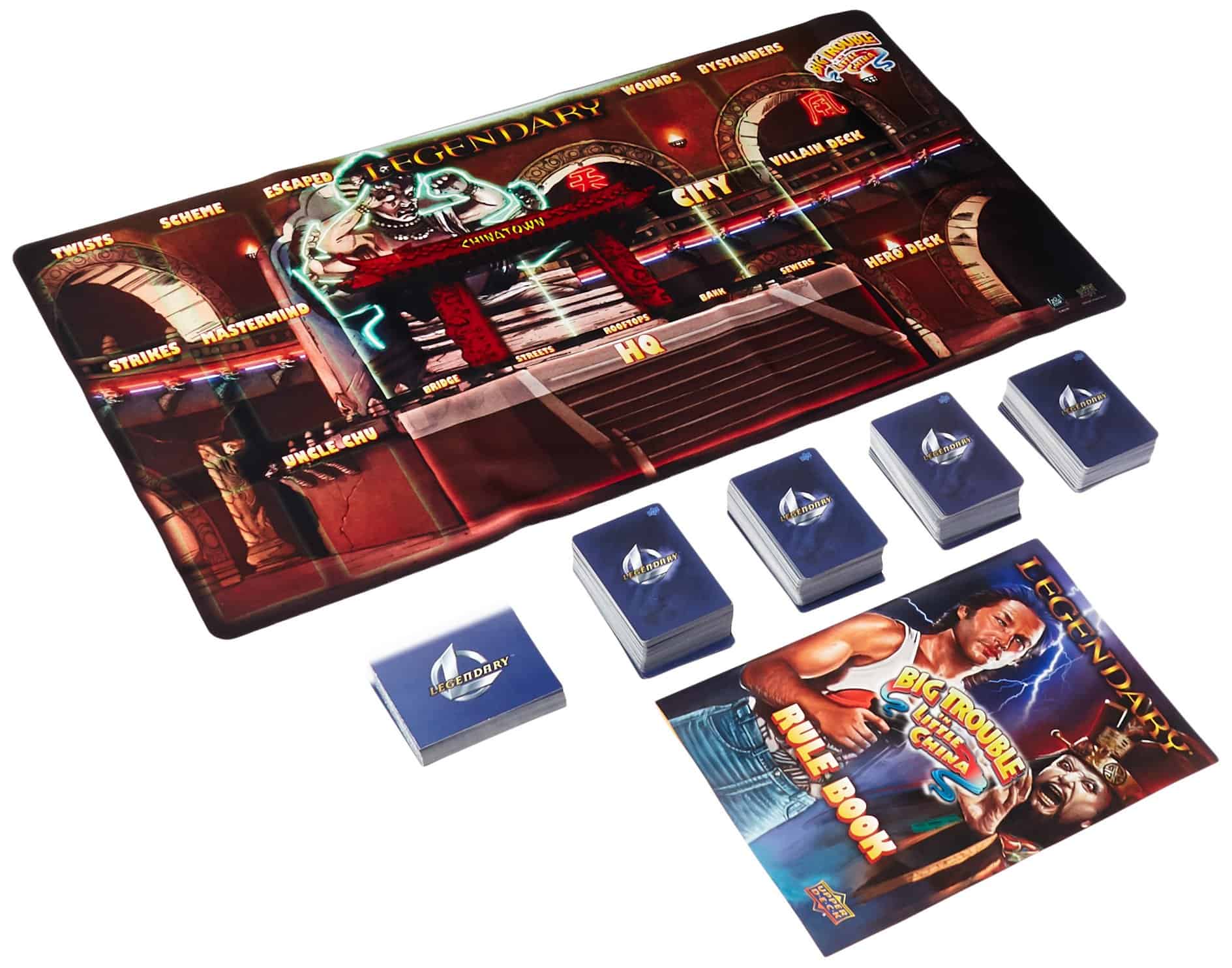 Legendary: Big Trouble in Little China es un juego cooperativo basado en la película de culto de 1986. Los jugadores reclutarán a sus héroes favoritos – Jack Burton, Gracie Law, Wang Chi e incluso alter egos como Henry Swanson. Legendary: Big Trouble in Little China llevará a los jugadores en un emocionante paseo por Chinatown mientras se enfrentan a múltiples versiones de David Lo Pan y a los clásicos villanos, los tres tormentas. ¿Podrás salvar a Miso Yin y a Gracie Law de las garras del mal? Bueno, como siempre dice tu viejo amigo Jack, «Nunca conduzco más rápido de lo que puedo ver. Además de eso, todo está en los reflejos».