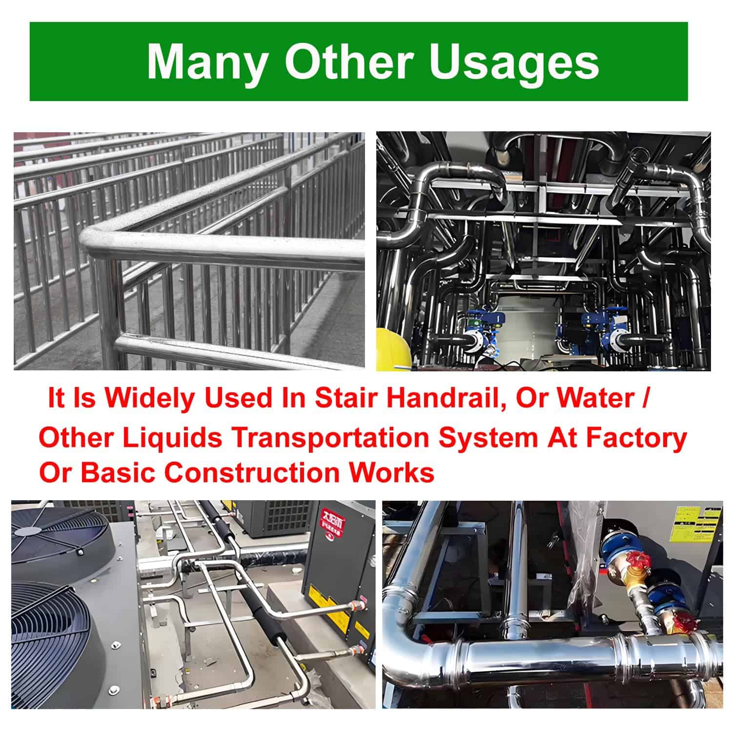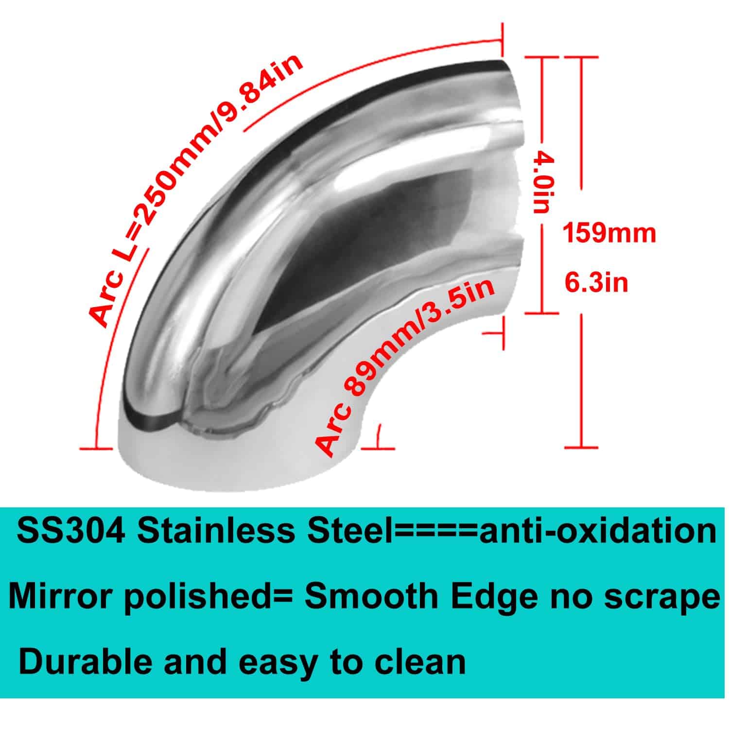 El codo de 90 grados de 4″ de Urcollections está diseñado para ofrecer resistencia y durabilidad en una variedad de aplicaciones industriales y automotrices. Fabricado con acero inoxidable SS304 de alta calidad, este accesorio de tubería es ideal para sistemas de escape pesados, tuberías de calentador solar e incluso en la transportación de líquidos industriales. Su diseño de curvado mandrel de precisión minimiza la turbulencia y su arco suave de 250mm (9.84″) garantiza un flujo eficiente. Los bordes pulidos a espejo reducen los riesgos de daños durante la instalación y manejo. Con una compatibilidad versátil que incluye soldadura, abrazaderas o empalmes, este codo es fácil de instalar en una variedad de aplicaciones. Además, su medida de 4″ (102mm) de diámetro exterior se adapta a sistemas de tuberías estándar, proporcionando una solución confiable y resistente. Ya sea en aplicaciones automotrices como sistemas de escape, en entornos industriales como tuberías HVAC o en proyectos agrícolas, este codo de acero inoxidable es una opción confiable y duradera para sus necesidades de tuberías.