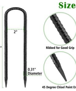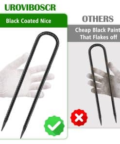 5. Propósitos Múltiples – Las estacas en forma de U son resistentes y reutilizables, ampliamente utilizadas en jardines, patios y campamentos al aire libre. Úselos como clavijas de trampolín pesadas de deber, anclas de suelo, anclas de columpios, estacas de gol de fútbol, estacas de trampa, estacas de juegos infantiles, estacas de jardín, estacas para correr perros, estacas inflables de vacaciones, sosteniendo gazebos y invernaderos de dosel, etc.