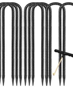 2. Recubierto de Negro – Estas anclas para trampolín están hechas de acero maleable. Acabado en polvo negro para ayudar a evitar el óxido. Estas estacas de rebar pesadas son sólidas, sin doblarse ni romperse.