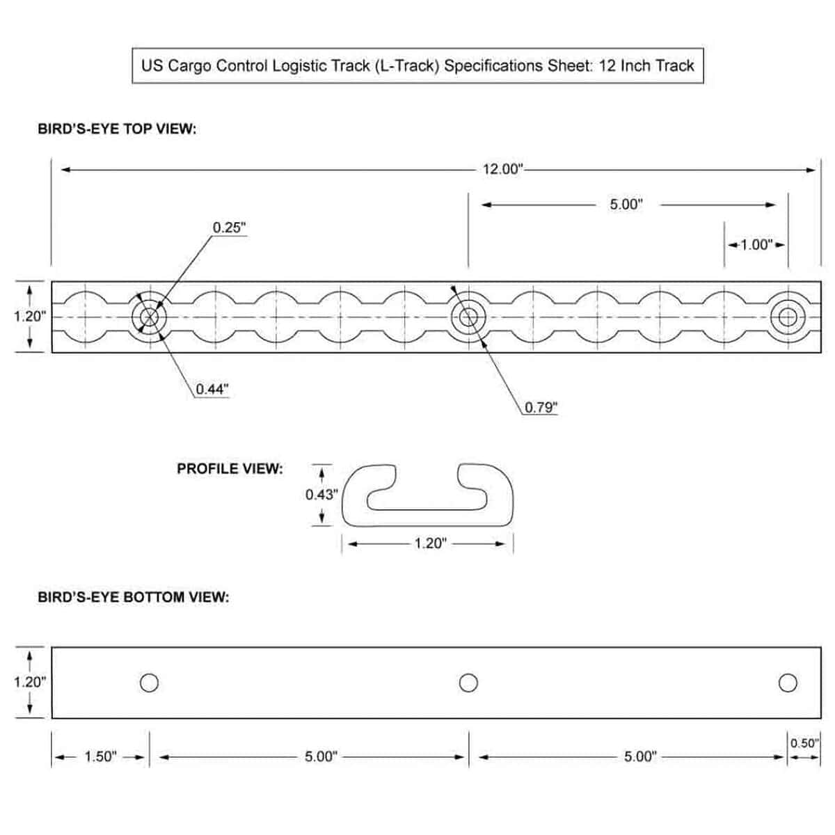 US Cargo Control Negro L Track (Paquete de 4), Riel de