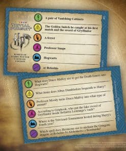Los fans de Harry Potter ponen a prueba sus conocimientos sobre las 8 películas de Harry Potter con Trivial Pursuit: World of Harry Potter Edición Ultimate. Muévete por el tablero con piezas de las Casas mientras respondes preguntas y recoges cuñas. Incluye 1800 preguntas para desafiar al fanático definitivo de Harry Potter. Las categorías incluyen lugares mágicos, personas mágicas, objetos y artefactos, animales y criaturas mágicas, las artes oscuras, y hechizos y pociones.