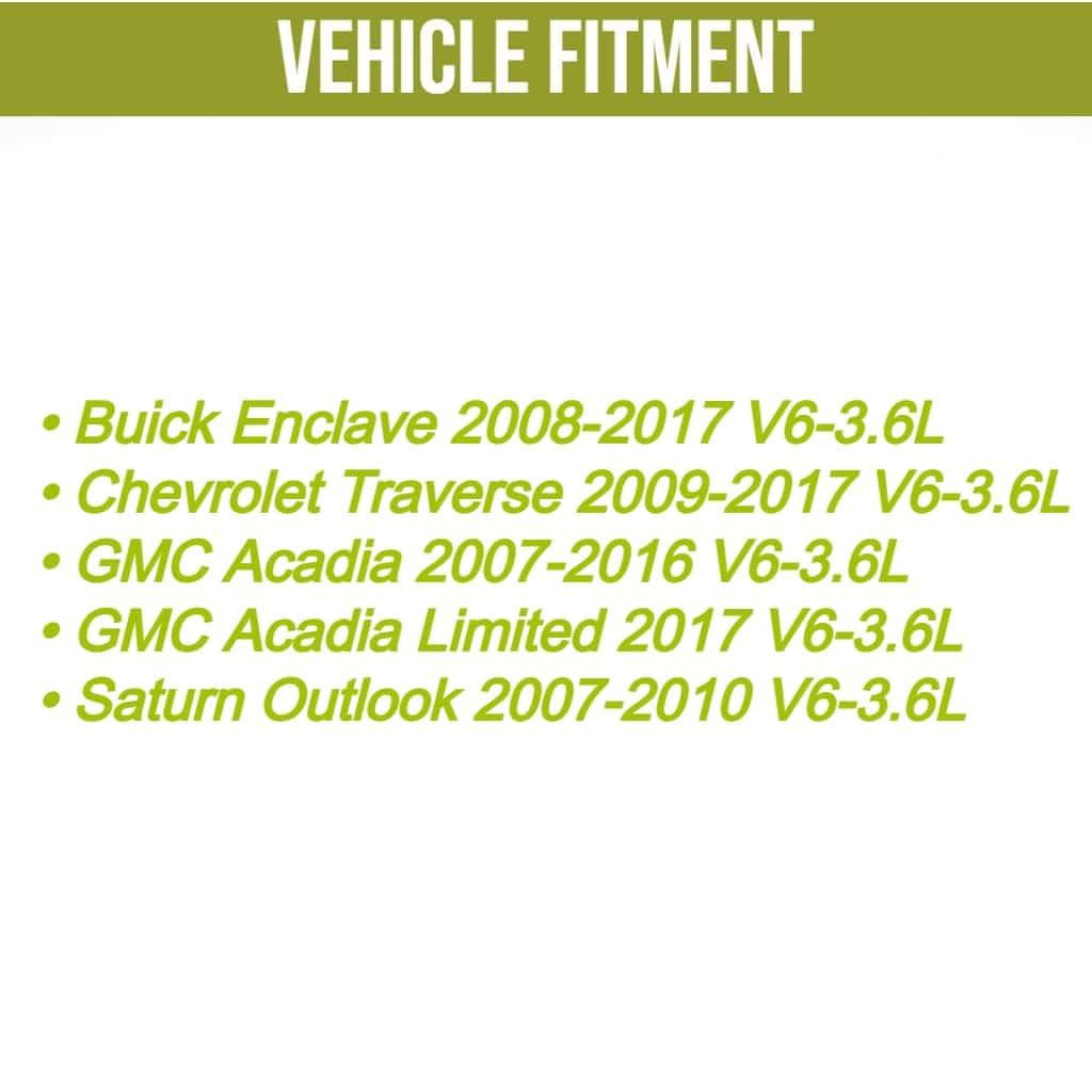 6. Compatible con: 2008-2017 BUICK-ENCLAVE; 2009-2017 CHEVROLET-TRAVERSE; 2007-2017 GMC-ACADIA, ACADIA LIMITED; 2007-2010 SATURN-OUTLOOK, V6 3.6L Front Left