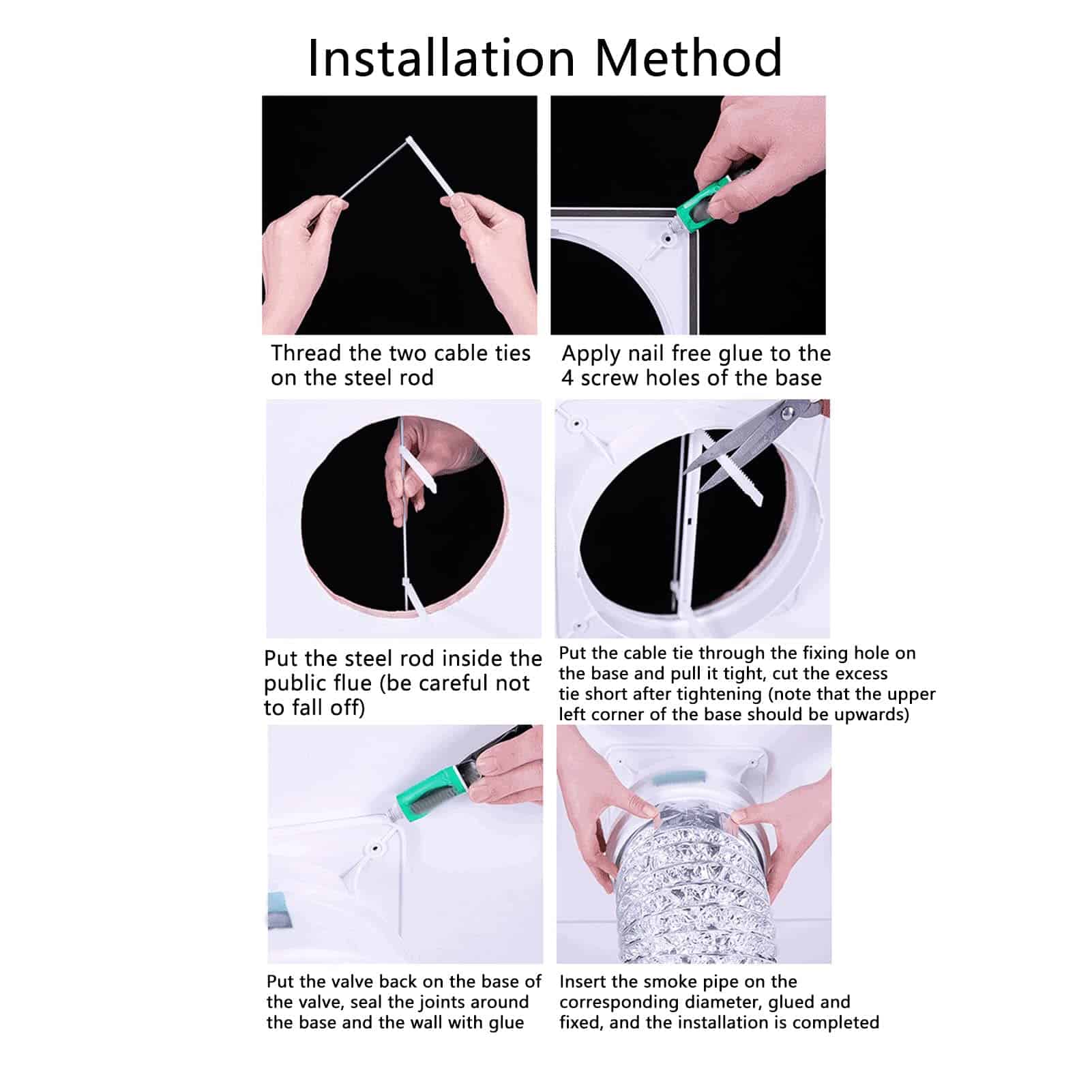 Característica: 1. Buena versatilidad: con un diseño especial de anillo reductor, esta válvula antirretorno es adecuada para la mayoría de campanas extractoras, apta para diámetro de tubería de 80 mm a 110 mm. 2. Apertura y cierre automáticos: abre automáticamente y expulsa humo a través del viento de escape, y se cierra rápidamente por gravedad y un resorte fuerte. 3. Antiodor y antimosquitos: la válvula antirretorno puede bloquear firmemente olores exteriores y mosquitos, manteniendo el ambiente de tu cocina fresco. 4. Buen sellado: utilizando anillo de sellado de silicona y tira de sellado de tablero trasero, se adapta estrechamente a la campana extractora y la pared, sin dejar espacios ni fugas de humo. 5. Fácil de instalar: con un diseño mejorado, la válvula antirretorno de campana extractora se puede instalar fácil y rápidamente en simples pasos. Especificación: Tipo de artículo: Válvula antirretorno para campana extractora Material: ABS Diámetro de tubería aplicable: Aprox. 80-110 mm Tamaño: Aprox. 17.5×17.5×12.5 cm Lista del paquete: 1 x Válvula antirretorno de campana extractora, 1 x Cable de sujeción, 1 x Varilla de acero