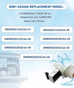 La Válvula de Agua DD81-02265A está diseñada específicamente para reparar lavavajillas Samsung, siendo compatible con una amplia gama de modelos, como DW60R2014US/AA-01 DW60R2014US/AA-00 DW80R2031US/AA-00 DW80N3030UW/AA-00 DW80N3030UB/AA-00 DW80N3030US/AA-00 DW80M2020US/AA-00, entre otros. Esta válvula de agua ha sido optimizada por el fabricante para superar los estándares OEM, mejorando el material y la función para lograr un rendimiento superior. Su sistema de procesamiento mejorado garantiza un funcionamiento estable y silencioso, maximizando así la vida útil del producto.