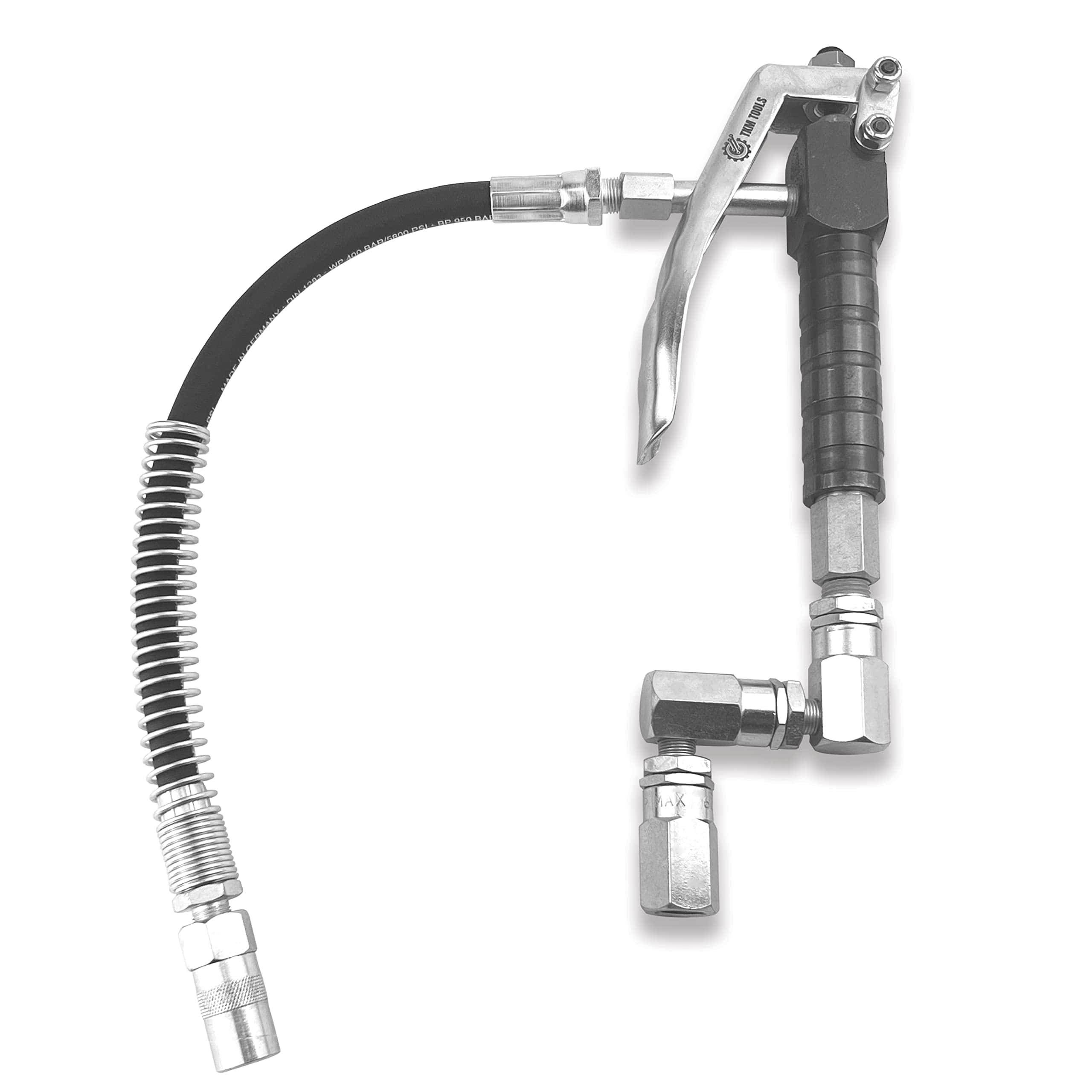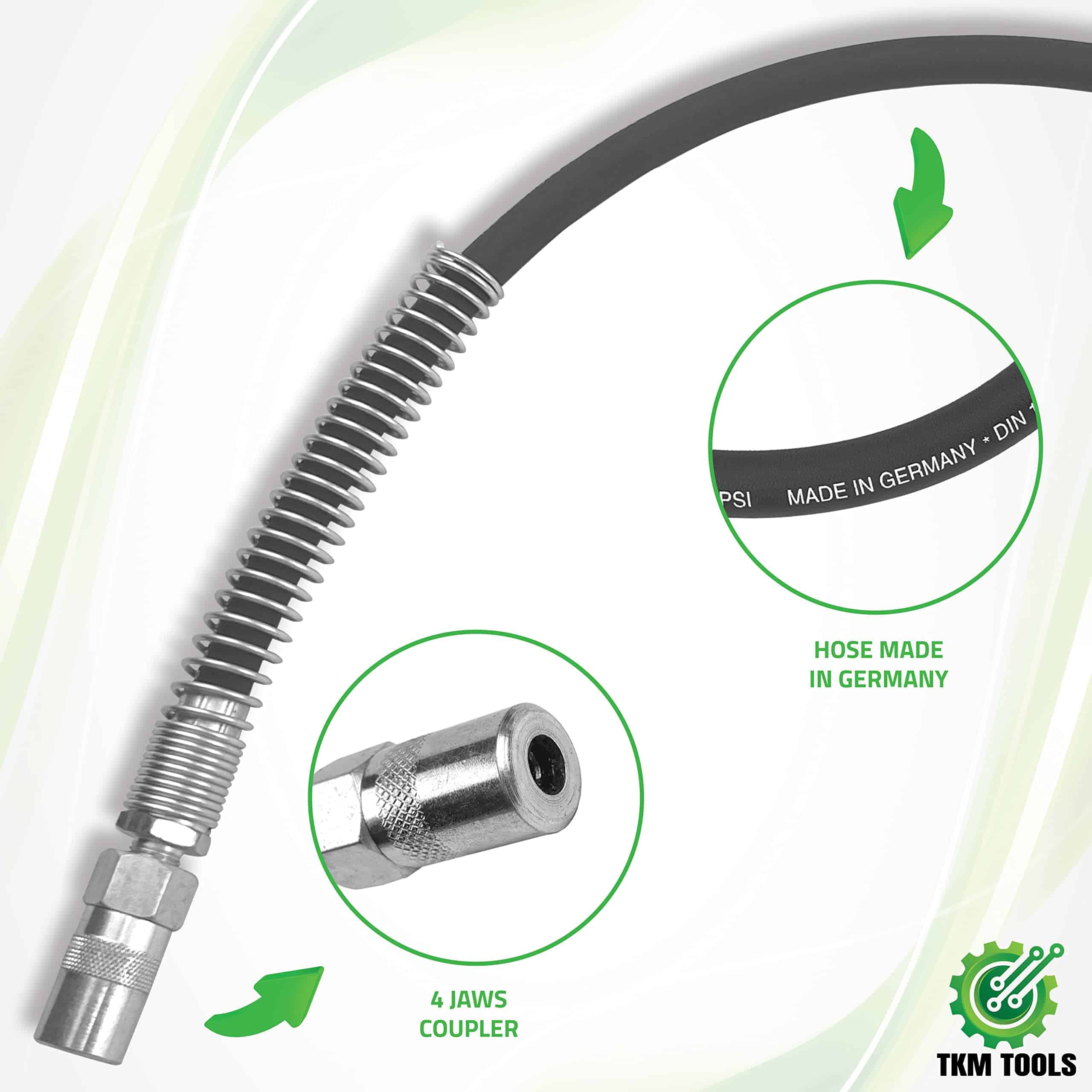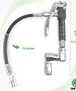 MEJORA TU EXPERIENCIA DE ENGRASADO: Con nuestra premium Válvula de Control de Grasa, llevarás tu engrasado al siguiente nivel. Diseñada para trabajar con bombas de grasa de alta presión, esta boquilla se usa generalmente con bombas operadas por aire con razones desde 14:1 hasta las más comunes como 40:1, 50:1, 60:1 y 70:1. TERMINA EL TRABAJO MÁS RÁPIDO: El flujo/dispensación continuos de grasa al presionar completamente el gatillo te permitirá dispensar más grasa más rápido, y la boquilla flexible te ayudará a terminar el trabajo más fácilmente. RESISTENTE Y DURADERA: Fabricada en acero, esta manija fue diseñada para durar más y siempre estar allí cuando la necesites. Con una presión de trabajo de hasta 7,500 PSI, esta válvula de control manejará la mayoría de tus tareas de engrasado. Z GIRATORIO LO HACE MÁS FÁCIL: Una combinación de diseño ergonómico y un giro en Z de 360 grados hacen que esta manija de control sea más fácil y cómoda de usar, especialmente cuando se requiere un uso diario.