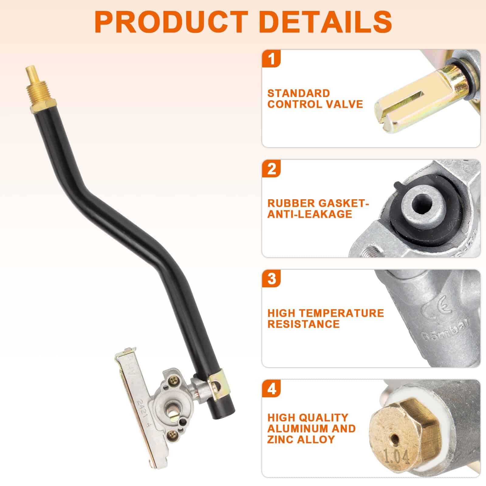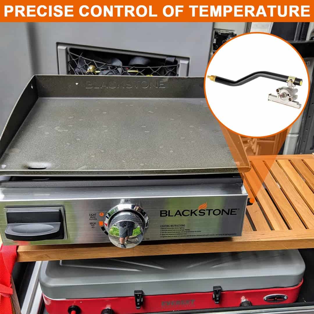 3. Fácil Instalación y Conveniencia Válvula de Control de Quemador de Gas para Blackstone Parrilla de Propano Líquido Modelo 1650 está lista para usar directamente desde la caja, no es necesario cambiar la manguera. Se puede conectar directamente al regulador ajustable de la parrilla BBQ.