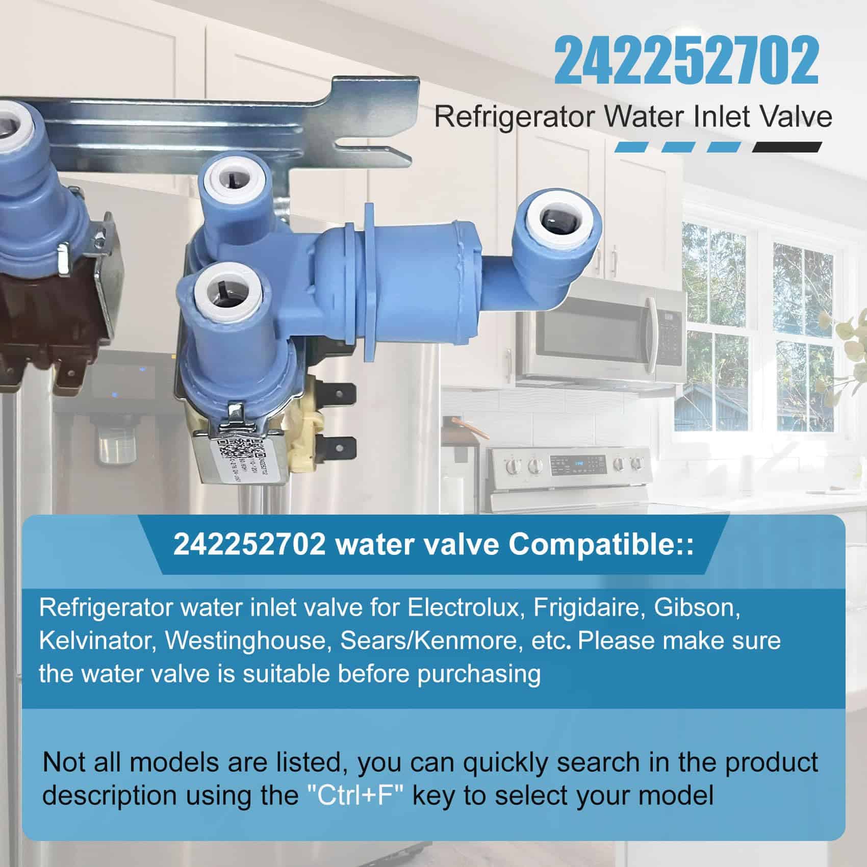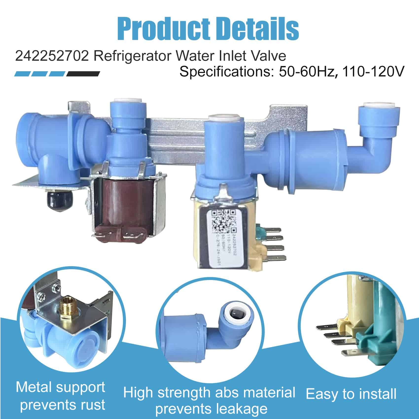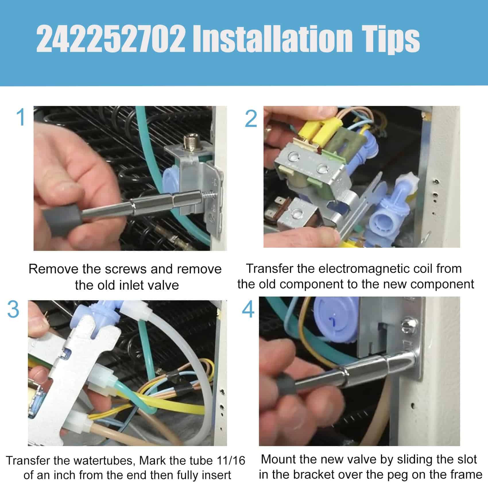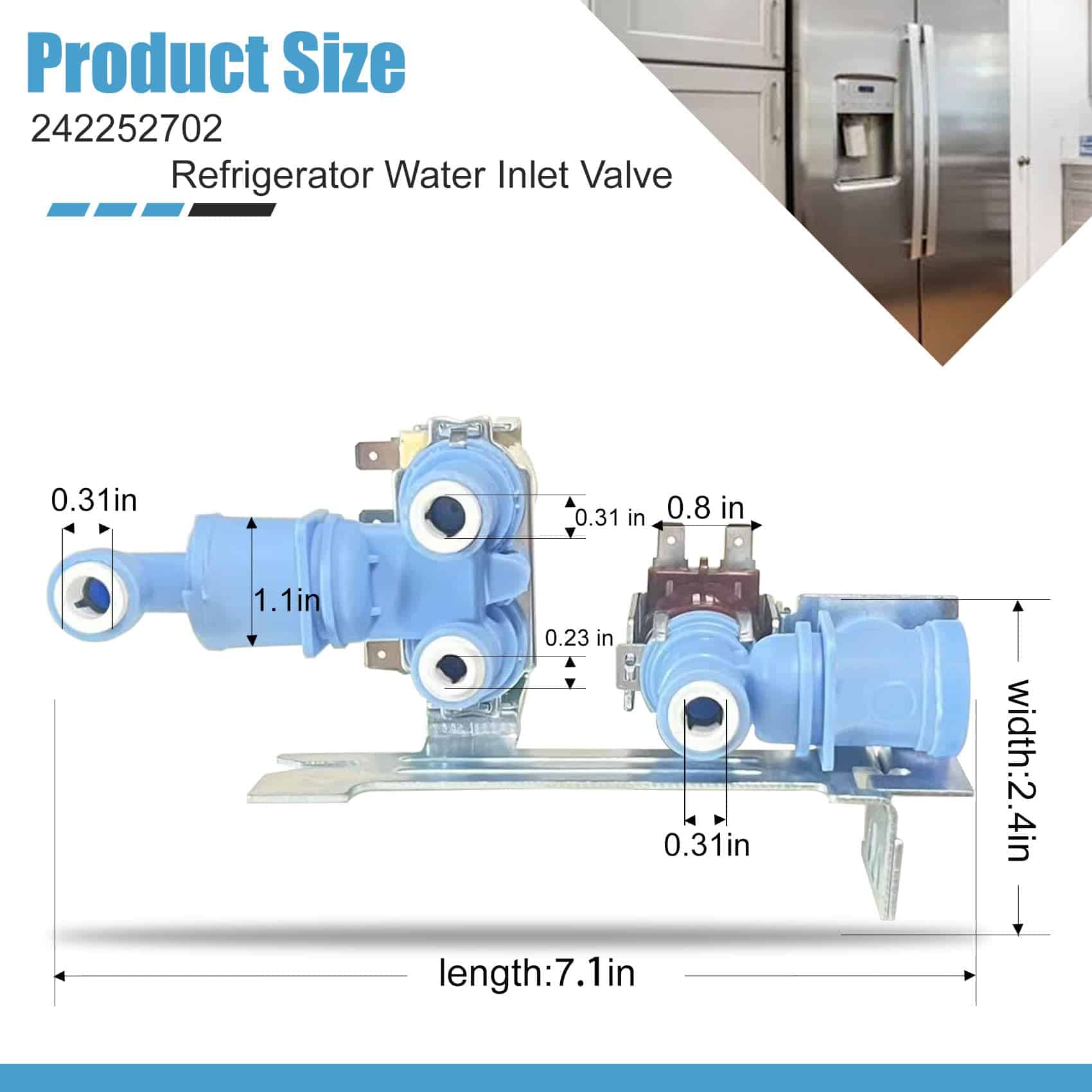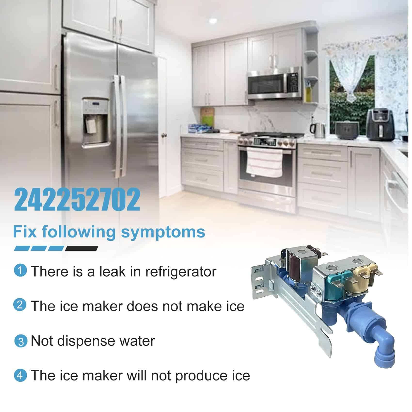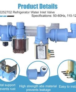 La válvula de entrada de agua 242252702 reemplaza la parte de Frigidaire AP5671757, número de reemplazo de la válvula de entrada de agua del refrigerador: 242252702, K-76150, WV2702, 241636701, 240531101, 2692163, AP5671757, PS7784018, 241734301, 241734302, 240321801, 240505101, 240505102, 240508101, 240508102, 7241734301, EAP7784018, etc. Por favor, verifique su número de parte para verificar la compatibilidad antes de ordenar. Válvula de agua para Frigidaire/Kenmore/Crosley 242252702, 240531101 Válvula de Entrada de Agua Compatible con refrigeradores Frigidaire, Kenmore, Electrolux, Crosley, White Westinghouse, Gibson. Válvula de entrada 242252702, especificaciones precisas, material confiable, duradero, para garantizar que su equipo tenga el mejor rendimiento. Válvula de Entrada de Agua para modelos Frigidaire Antes de comprar, puede buscar rápidamente su modelo en la «descripción del producto» usando «Ctrl+F». Si tiene alguna pregunta, no dude en hacérnoslo saber. BFHS2611LM, BFHS2611LM0, BGHS2634KE0, BGHS2634KE1, BGHS2634KP0, BGHS2634KP1, BGHS2644KF0, BGHS2644KF1, BFHS2611LM1, BFHS2611LM2, BGHS2634KE2, BGHS2634KP2, BGHS2644KF2, CRSE234FB2, CFD27SDPS0, CFD28SDQS0, CFD28SDS6, CFD28SDS9, CRSE230KW0, CRSE234FB0, CRSE234FB1, CRSE234FB3, CRSE234FB4, CRSE234FQ0, CRSE234FQ1, CRSE234FQ2, CRSE234FQ3, CRSE234FQ4, CRSE234FSM0, CRSE234FSM1, etc. Calidad y Garantía Cada pieza y accesorio de refrigerador 240531101 de la válvula de entrada de agua opera sin problemas, completamente nueva y nunca usada. Ofrecemos una garantía de un año. Para cualquier problema de calidad, seremos responsables de reenviarle uno nuevo o reembolsarle. Esto no solo refleja confianza en la calidad del producto, sino que también asegura su inversión.