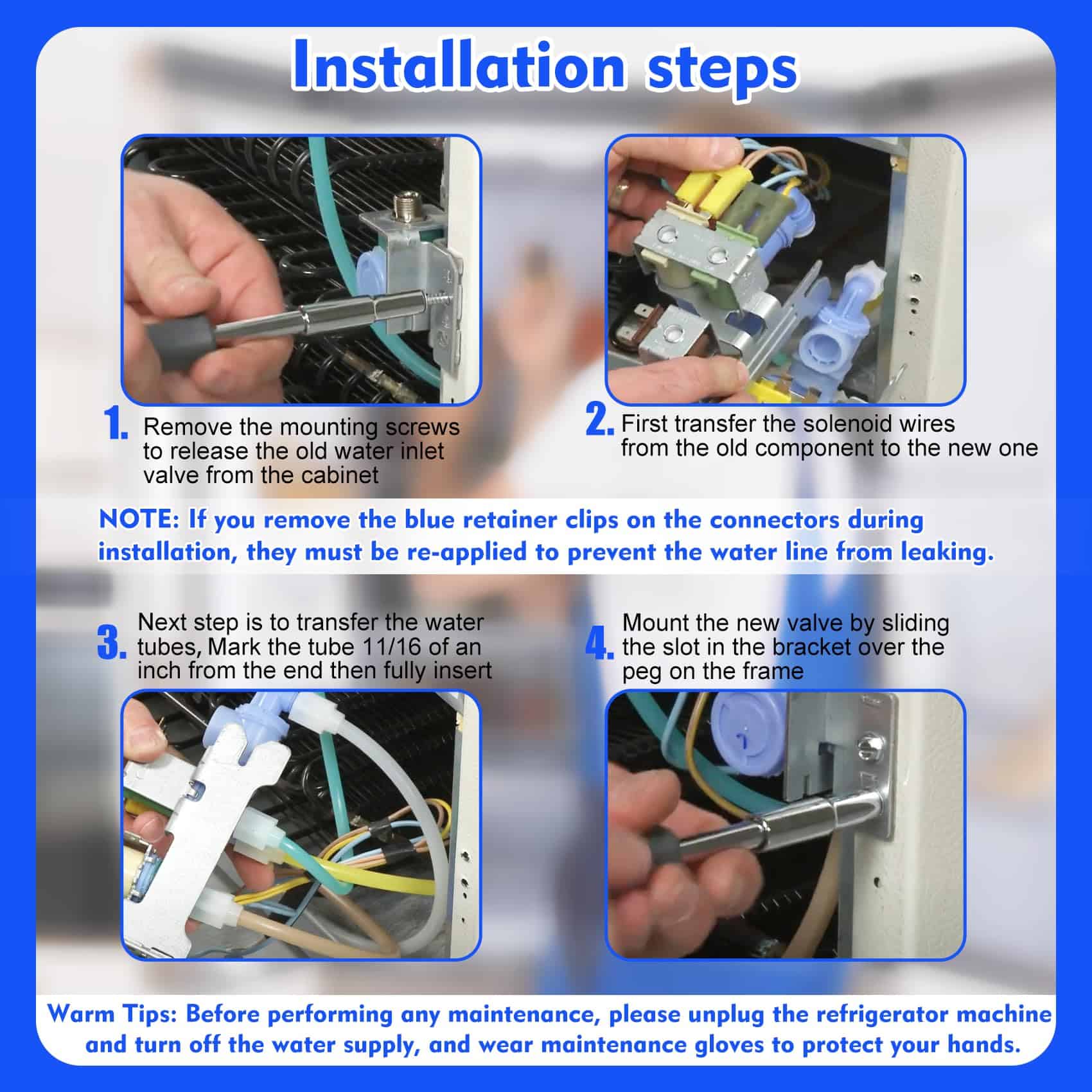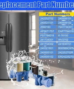 La válvula de entrada de agua triple para nevera es compatible con varias marcas como Frigidaire, Kenmore, Electrolux y Crosley. Sustituye a múltiples números de pieza como 2692163, AP5671757, PS7784018, 241734301, K-76150, WV2702, entre otros. Asegúrate de verificar la compatibilidad de los números de pieza antes de ordenar. Esta válvula de entrada de agua controla el flujo de agua hacia el fabricante de hielo y el dispensador, lo que garantiza un rendimiento óptimo de la nevera. Puede corregir síntomas como la falta de hielo, fugas o falta de agua a través de la puerta. Ofrecemos un año de garantía y un servicio postventa excepcional para tu tranquilidad.