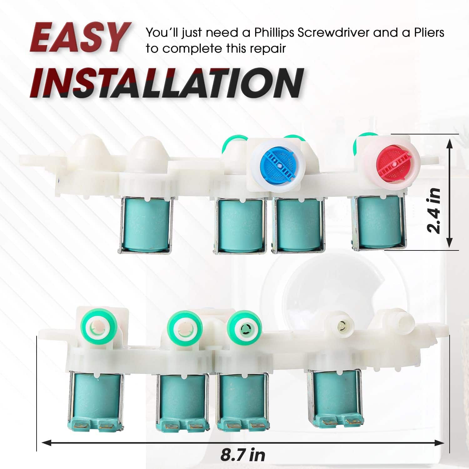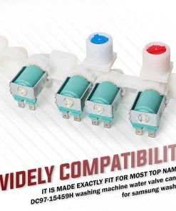 La Válvula de Entrada de Agua DC97-15459H controla el flujo de agua en la lavadora. Marcas compatibles incluyen: Sam-sung. Reemplaza los siguientes números de parte: 3276197, AP5623056, PS4220861, EAP4220861. Funciona con los siguientes modelos: WA400PJHDWR/AA-01, WA400PJHDWR/AA-02, WA400PJHDWR/AA-03, WA400PJHDWR/AA-04, WA40J3000AW/A2-00, WA45H7000AW/A2-02, WA45H7000AW/A2-04, WA45M7050AW/A4-03, WA45M7050AW/A4-00, WA45M7050AW/A4-01, WA45M7050AW/A4-02, WA45M7050AW/A4-04, WA45H7000AW/A2-00, WA45H7000AW/A2-01, WA45H7000AW/A2-03, WA422PRHDWR/AA-02, WA422PRHDWR/AA-00, WA422PRHDWR/AA-01, WA45H7000AP/A2-00. Repara los siguientes síntomas: La lavadora no se detiene de llenarse de agua / La lavadora no tiene agua caliente o fría / Fugas en la lavadora / La lavadora no se llena de agua / La lavadora hace ruido. Contacta con nosotros si tienes alguna pregunta sobre compatibilidad. Comenta abajo en la sección de preguntas y respuestas del clientes o envíanos un mensaje a través del vendedor Seentech. Estamos encantados de ayudarte a asegurar que seleccionas el número de parte correcto para tu lavadora.