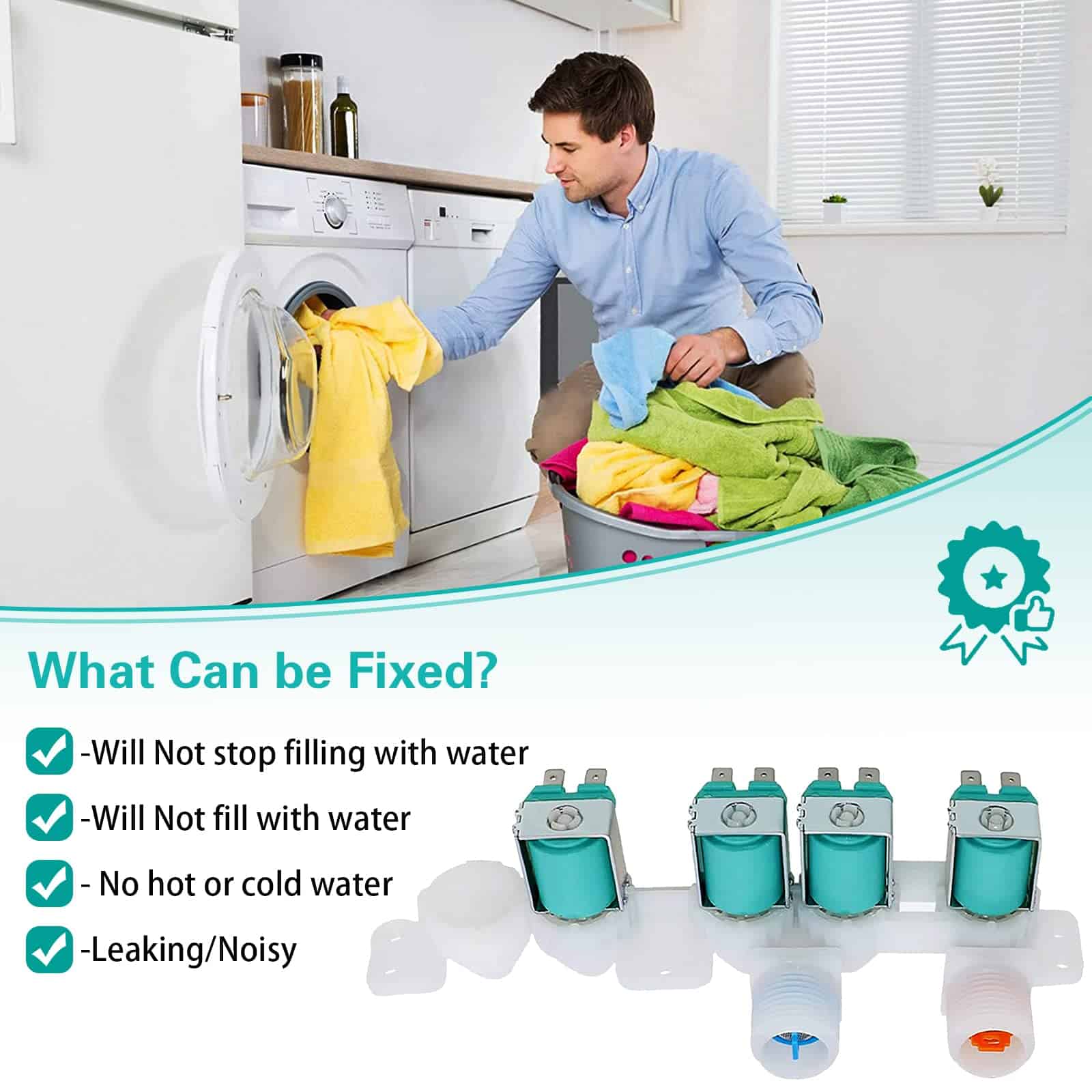 3. Problemas que se pueden solucionar: la lavadora no se puede llenar de agua correctamente, no puede funcionar o se lava a la temperatura incorrecta del agua. Por ejemplo: no se detiene el llenado de agua, no hay agua caliente o fría, la lavadora gotea, no se llena de agua, hace ruido. Consejos: Desconecte la fuente de alimentación y la fuente de agua de su lavadora antes de comenzar cualquier reparación.