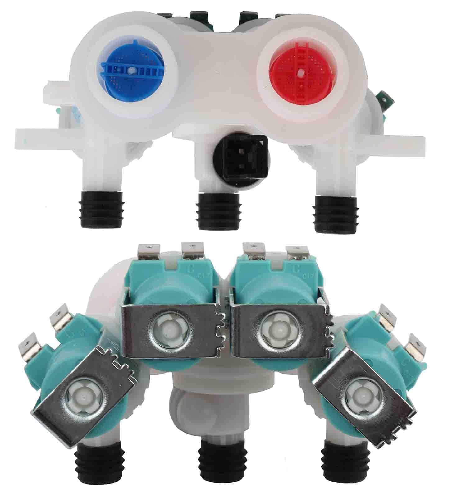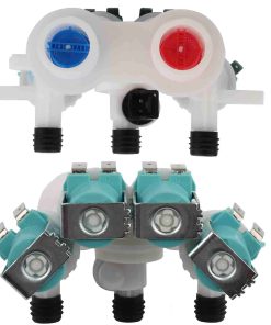 3. ESPECIFICACIONES DEL PRODUCTO: La válvula de entrada de agua de la lavadora W11165546 con soporte de montaje llena la tina con agua fría, tibia o caliente durante los ciclos de lavado y enjuague. El cuerpo de la válvula de este artículo puede ser de color azul o verde. El agua puede entrar a través de dos puertos y esta válvula es compatible con una manguera de medio pulgada de diámetro interior.